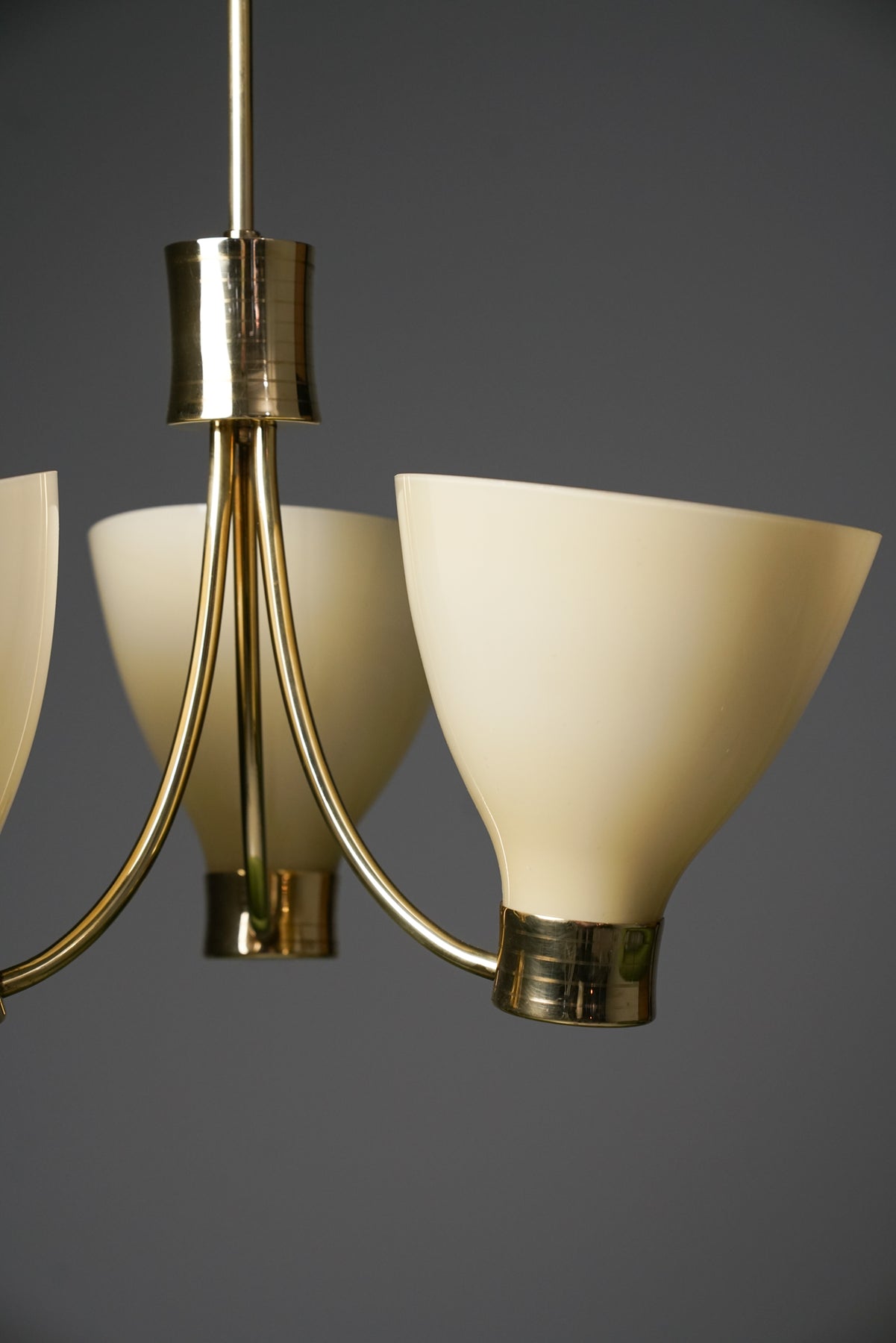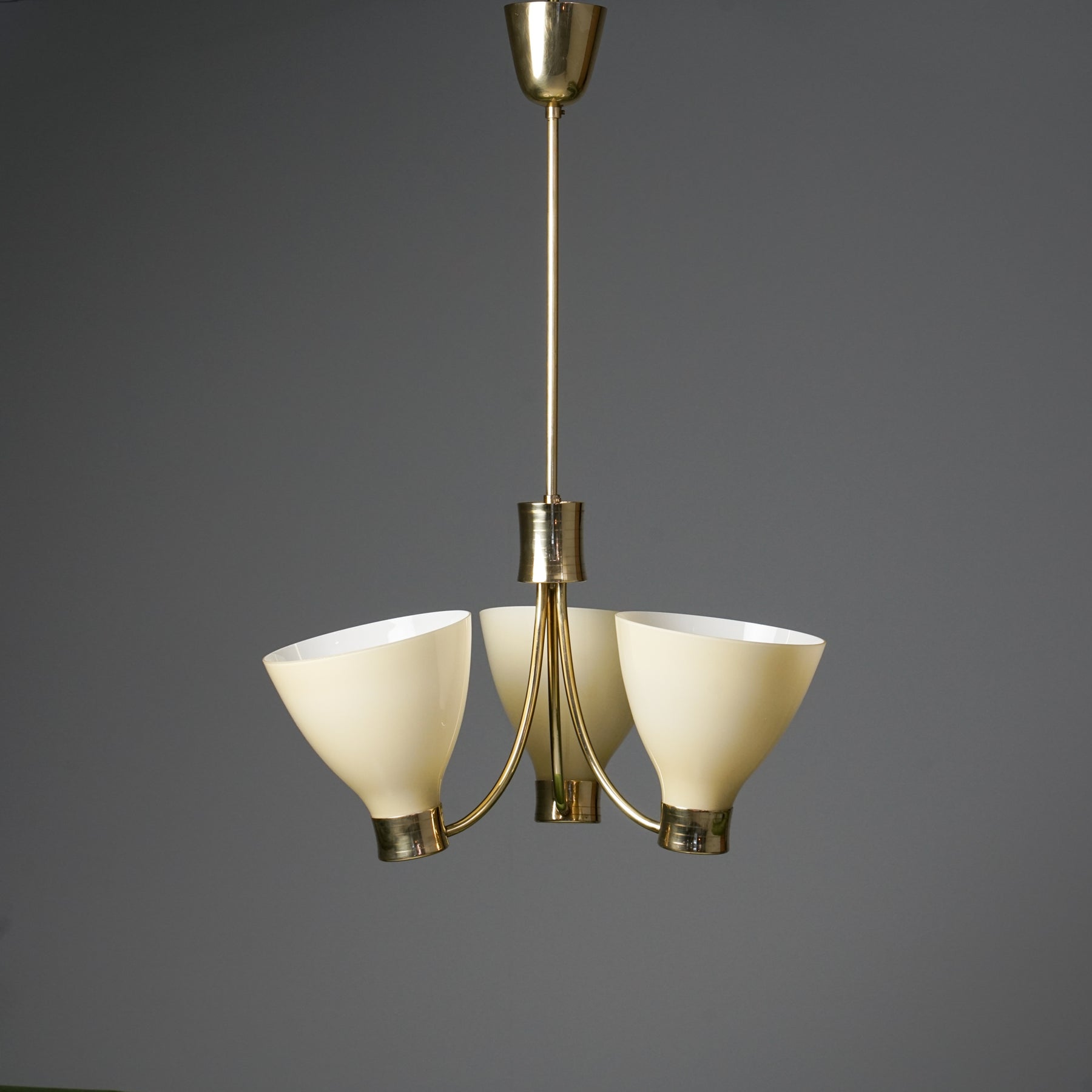 Kattovalaisin malli 212-3, design Lisa Johansson-Pape, valmistanut Orno, 50-luku. Runko messinkiä, opaali lasikuvut. Leimattu. Hyvä kunto, pientä ajan patinaa.