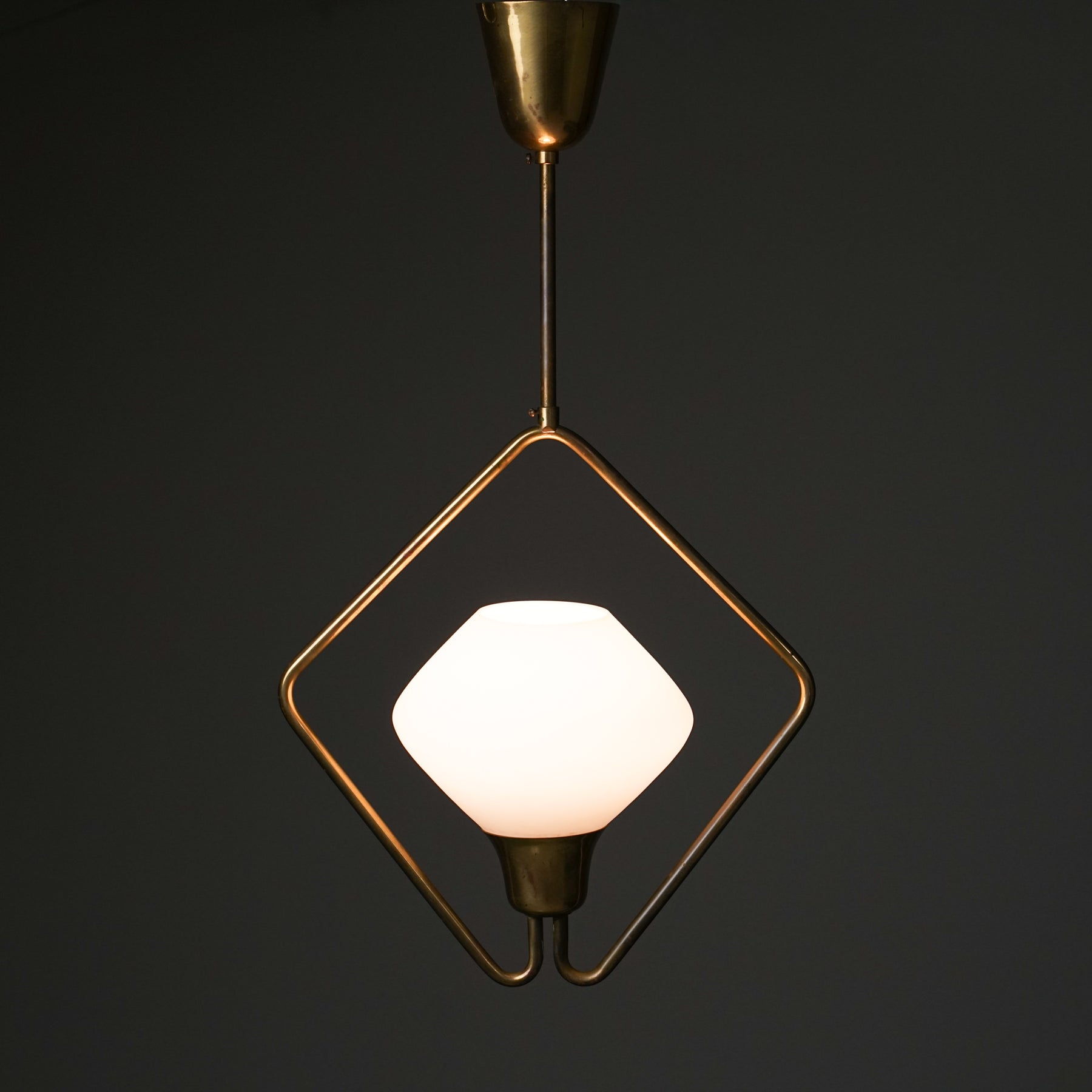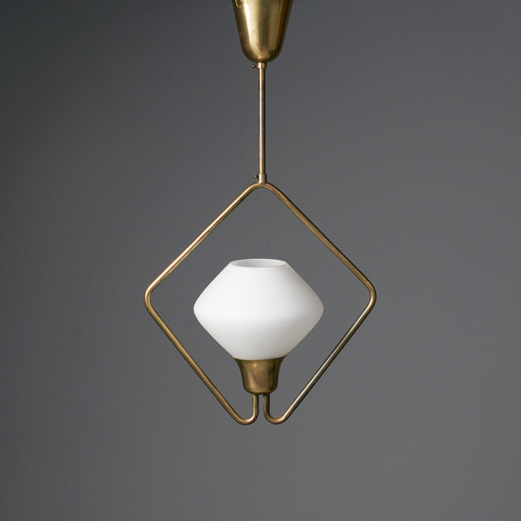 Malli K2-47 kattovalaisin, design Maria Lindeman, valmistanut Idman, 1900-luvun puoliväli. Opaali lasikupu, runko messinkiä. Hyvä kunto, pientä ajan patinaa.