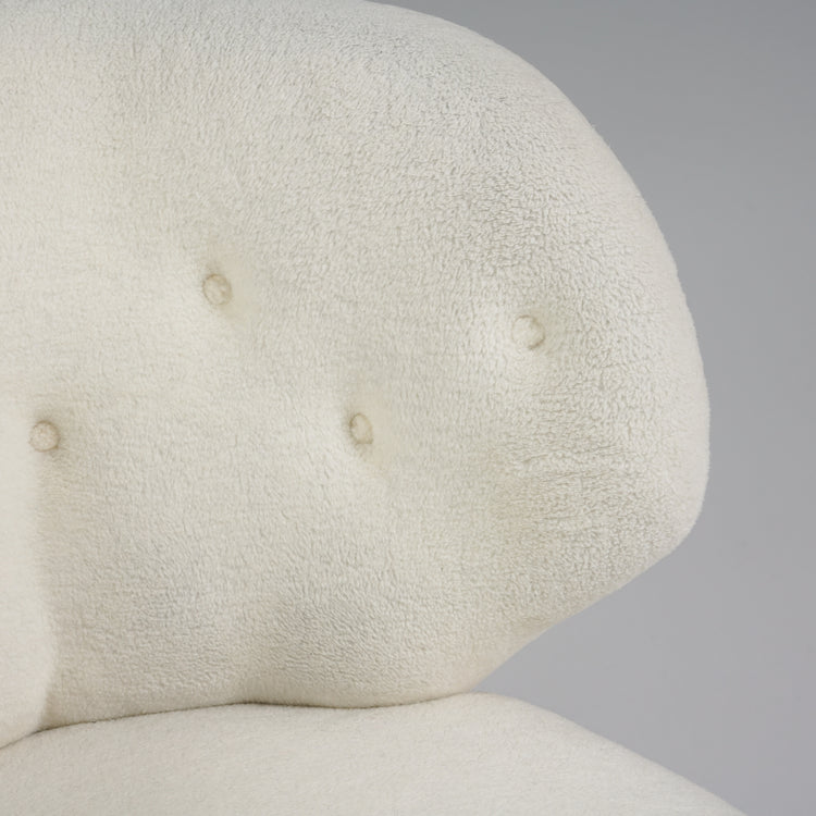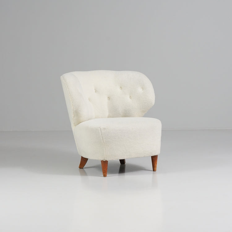 Nojatuoli, valmistanut Boman, 40/50-luku. Runko koivua, myöhemmin uudelleen verhoiltu. Hyvä kunto, ajan patinaa.