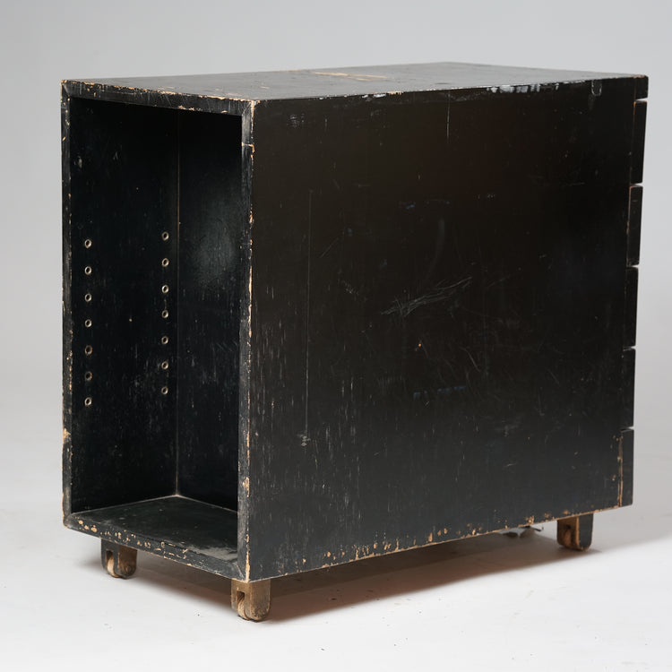 Laatikosto B96, design Aino Aalto, valmistanut Oy Huonekalu- ja Rakennustyötehdas AB, 30/40-luku, maalattua koivua, hyvä kunto, runsasta ajan patinaa ja jälkeä.