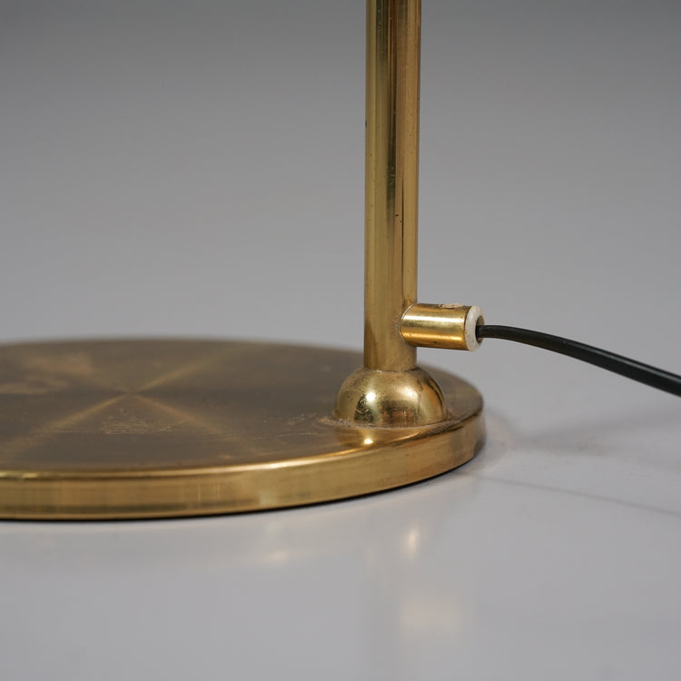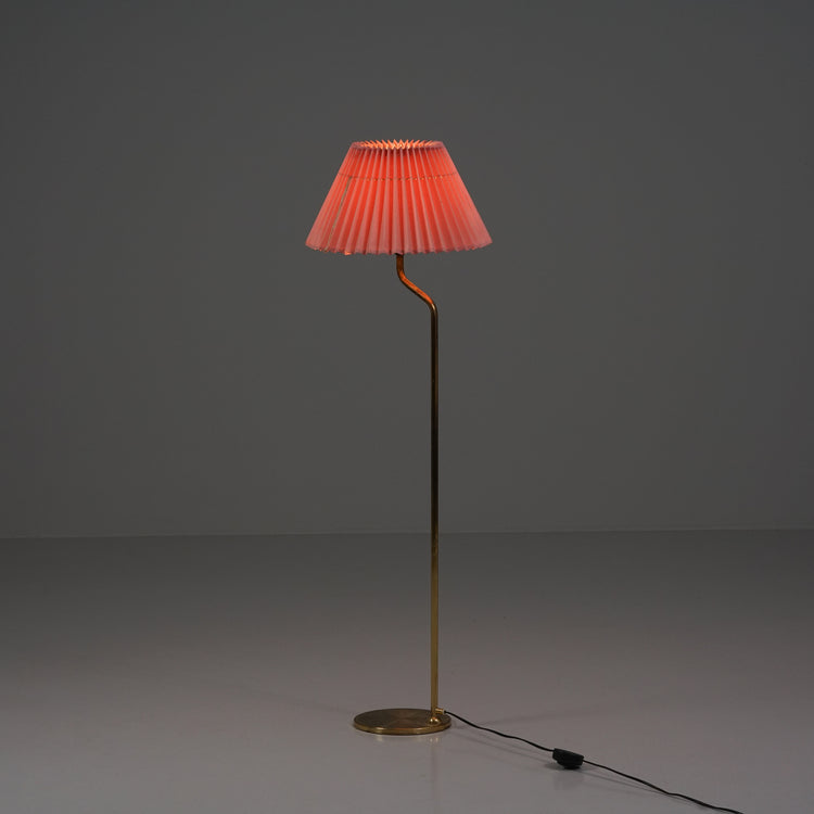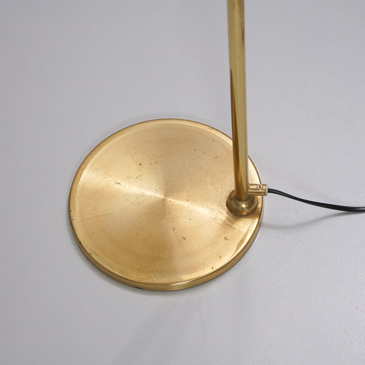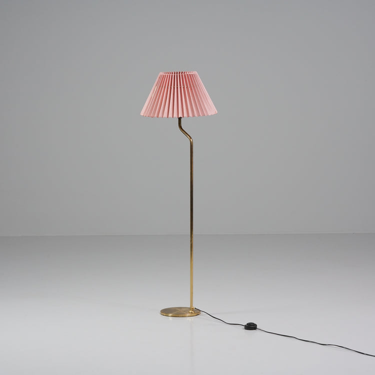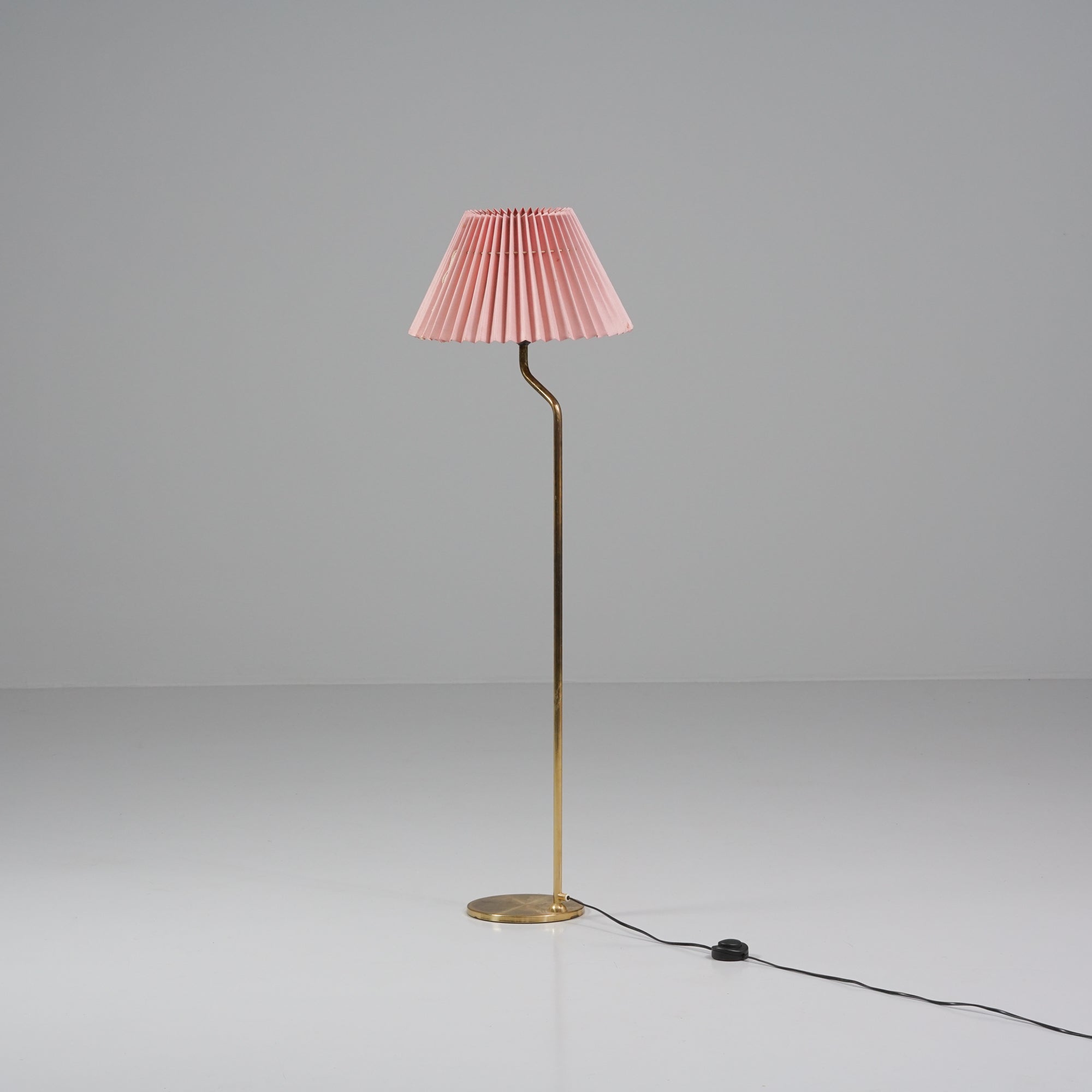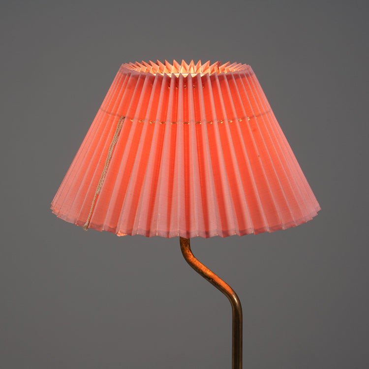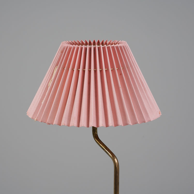 Lattiavalaisin malli G125-2, valmistanut Nya Öia, 1900-luvun puoliväli. Runko messinkiä, kangas varjostin. Hyvä kunto, pientä ajan patinaa.