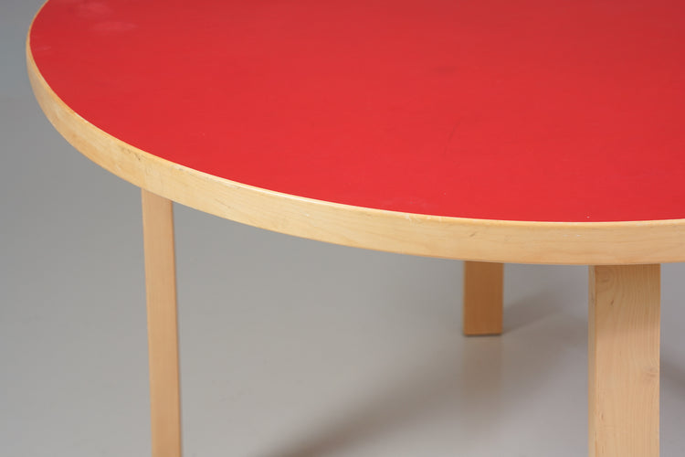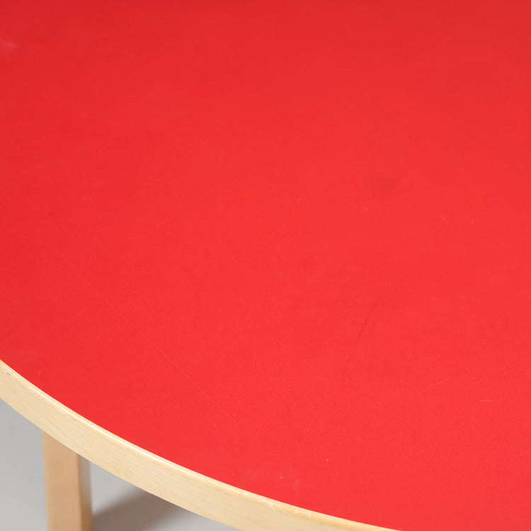 Mali 91 ruokapöytä, design Alvar Aalto, valmistanut Artek, 60-luku. Koivurunko, linoleum kansi. Hyvä kunto, ajan patinaa ja jälkeä eritoten kannessa.