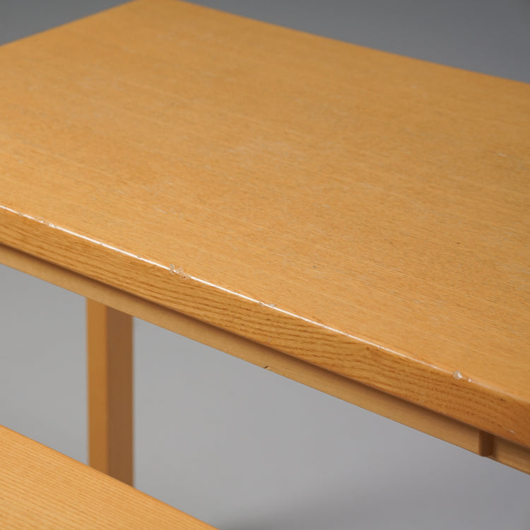 Sarjapöytä malli 88 A&B, design Alvar Aalto, valmistanut Artek, 1900-luvun loppupuoli. Runko koivua, saarni kansi. Leimattu. Hyvä kunto, ajan patinaa ja pientä jälkeä.