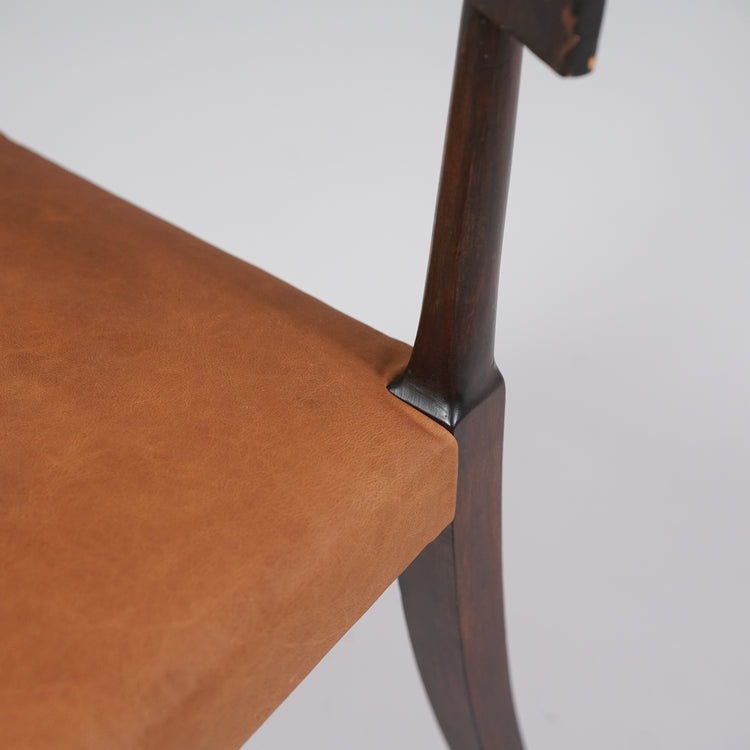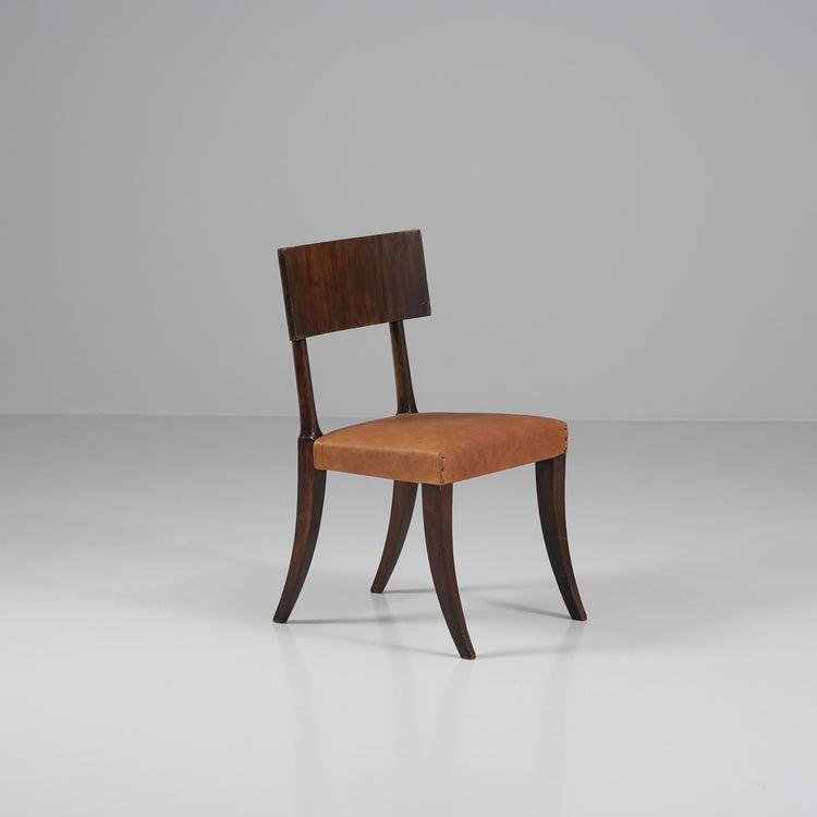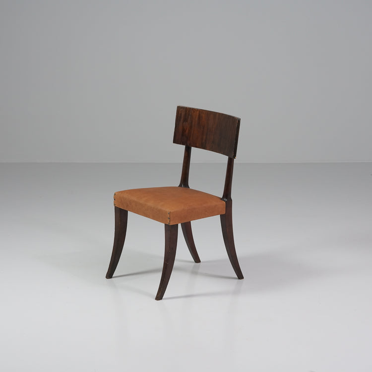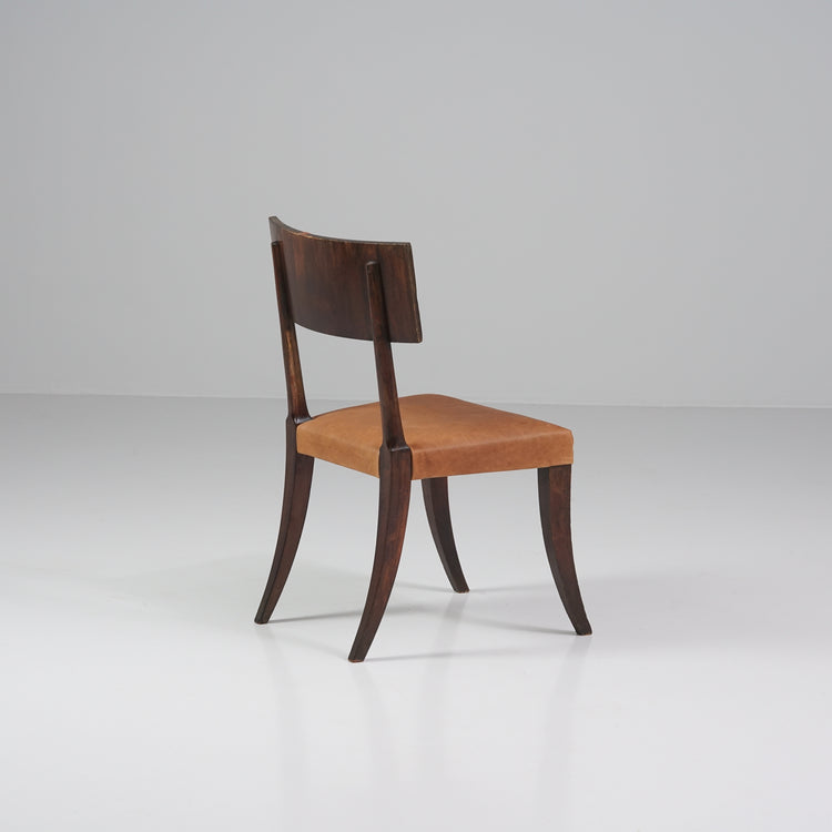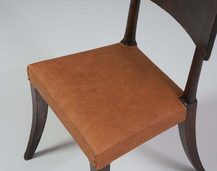 Malli Klismo tuolit (8 kpl myydään erikseen), design Arttu Brummer, 30-luku. Runko petsattua koivua, nahkaistuin. Hyvä kunto, ajan patinaa. Tuolit myydään erikseen, ilmoitettu hinta on kappalehinta.