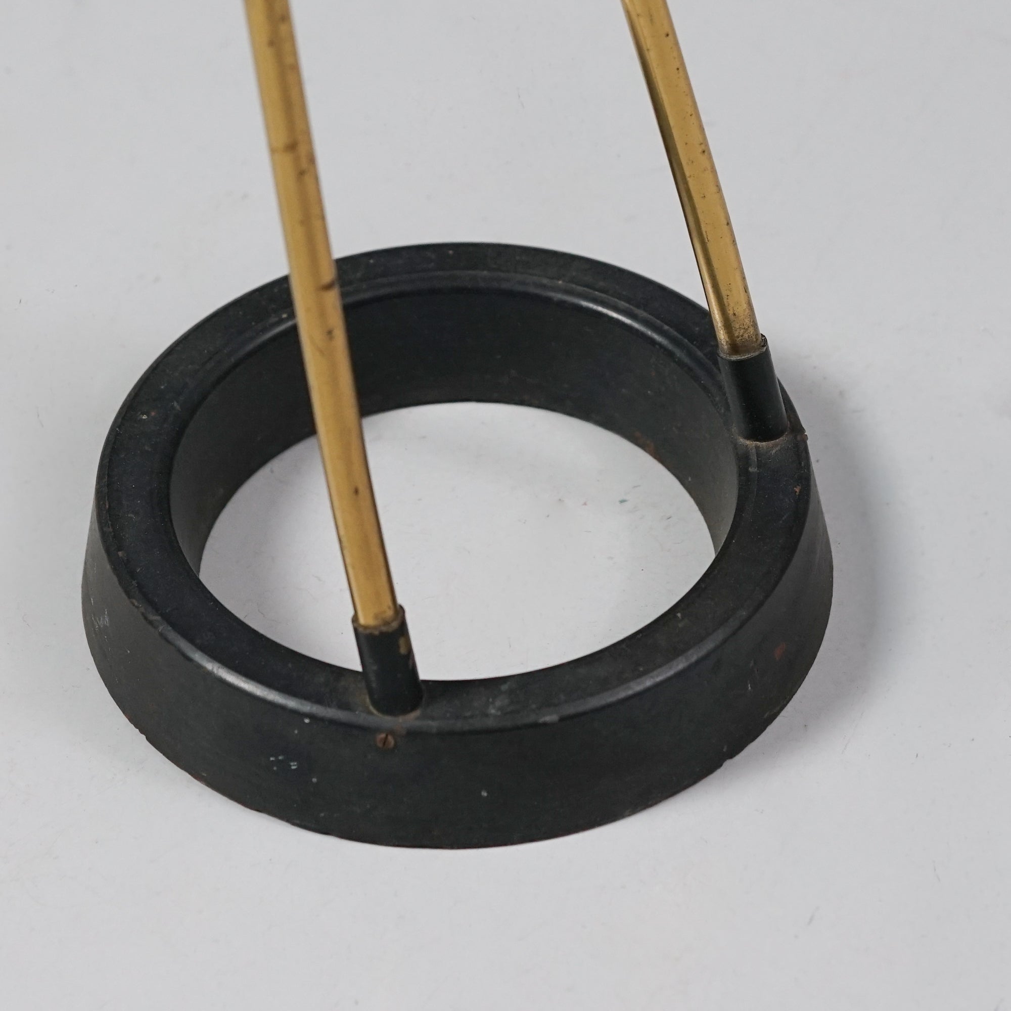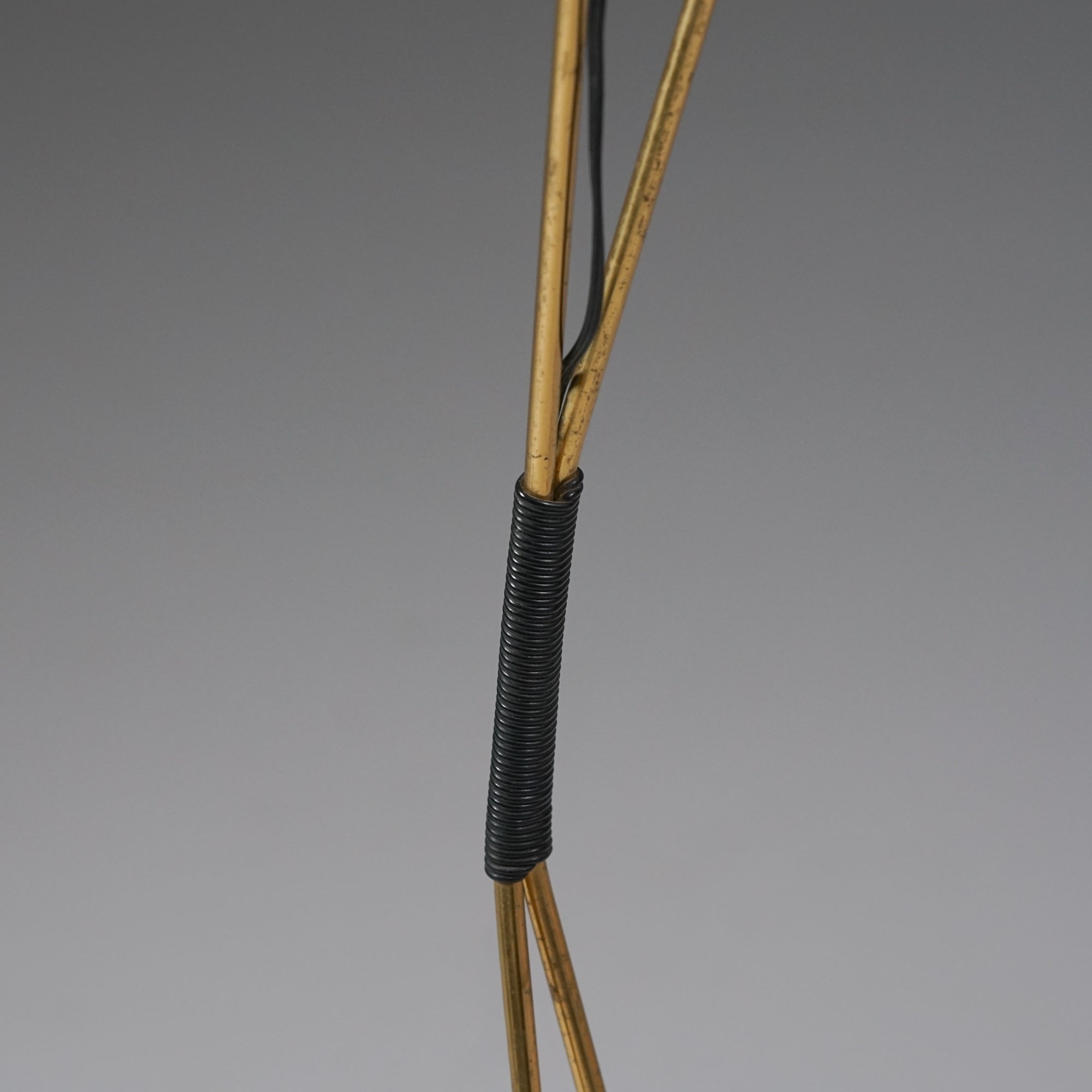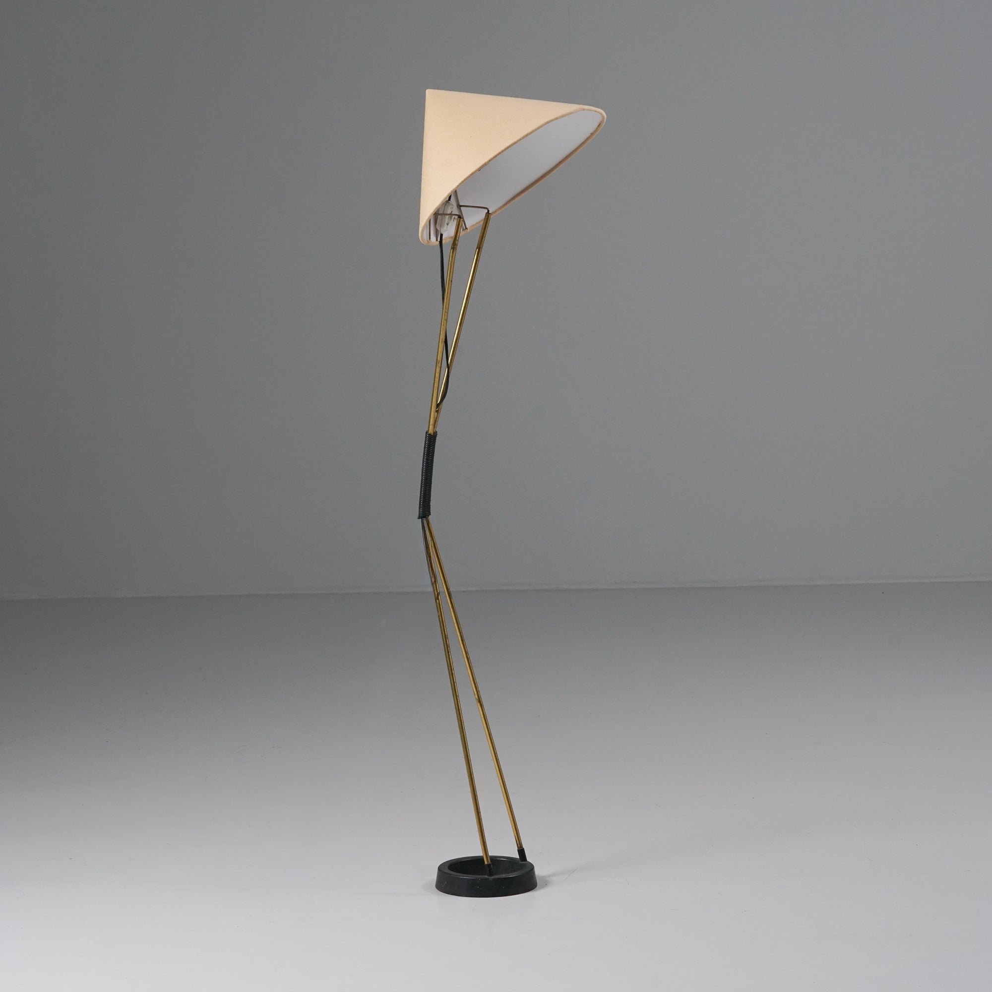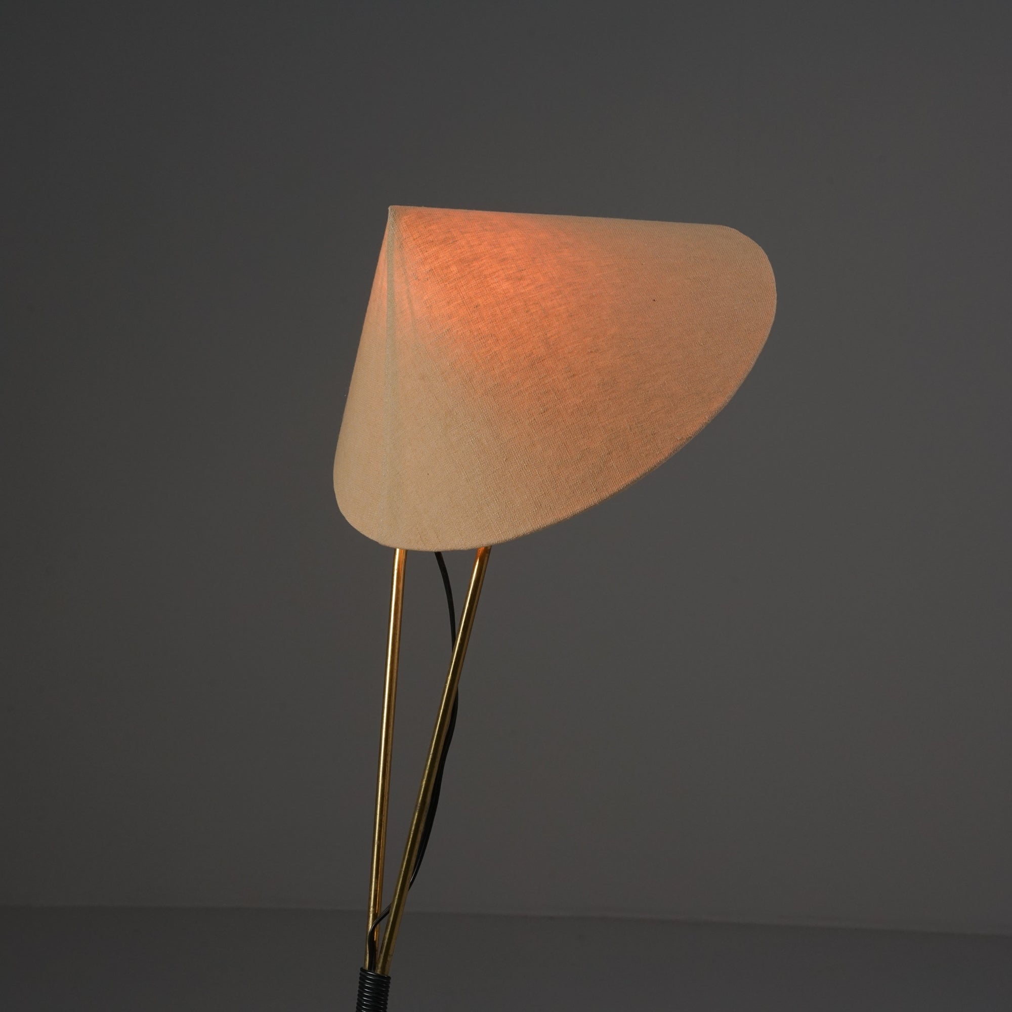 Lattiavalaisin, valmistettu Ruotsissa, 50-luku. Runko rautaa ja messinkiä, musta muovipunos rungossa, uusittu pellava varjostin. Valaisin uudelleen sähköistetään. Tällöin johto tulee muovipunoksen välistä takaa. Hyvä kunto, ajan patinaa.