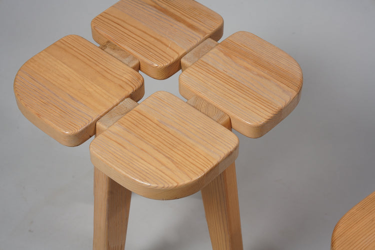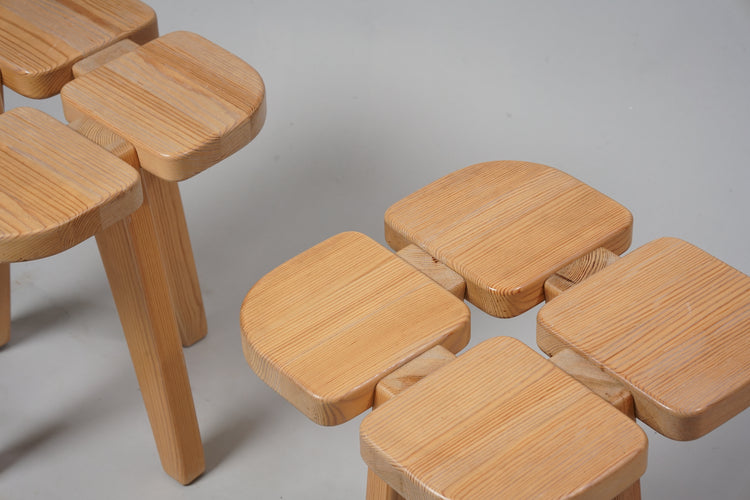 Apila jakkarat (2kpl myydään yhdessä), design Rauni Peippo, valmistanut Stockmann/Keravan puusepät, 1900-luvun puoliväli, lakattua mäntyä, leimattu, hyvä kunto, pientä ajan patinaa. Jakkarat myydään yhdessä. Ilmoitettu hinta on 2kpl hinta.