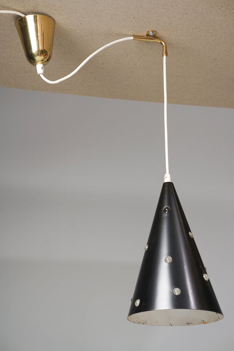 Kattovalaisin K2-6, design Mauri Almari, valmistanut Idman, 50/60-luku. Mustaksi maalattu vajostin, jossa upeat lasipallot, jotka heijastavat kauniisti varjostien sisältä tuleaa valoa. Messinki yksityiskohdat. Hyvä kunto, ajan patinaa ja pientä jälkeä.