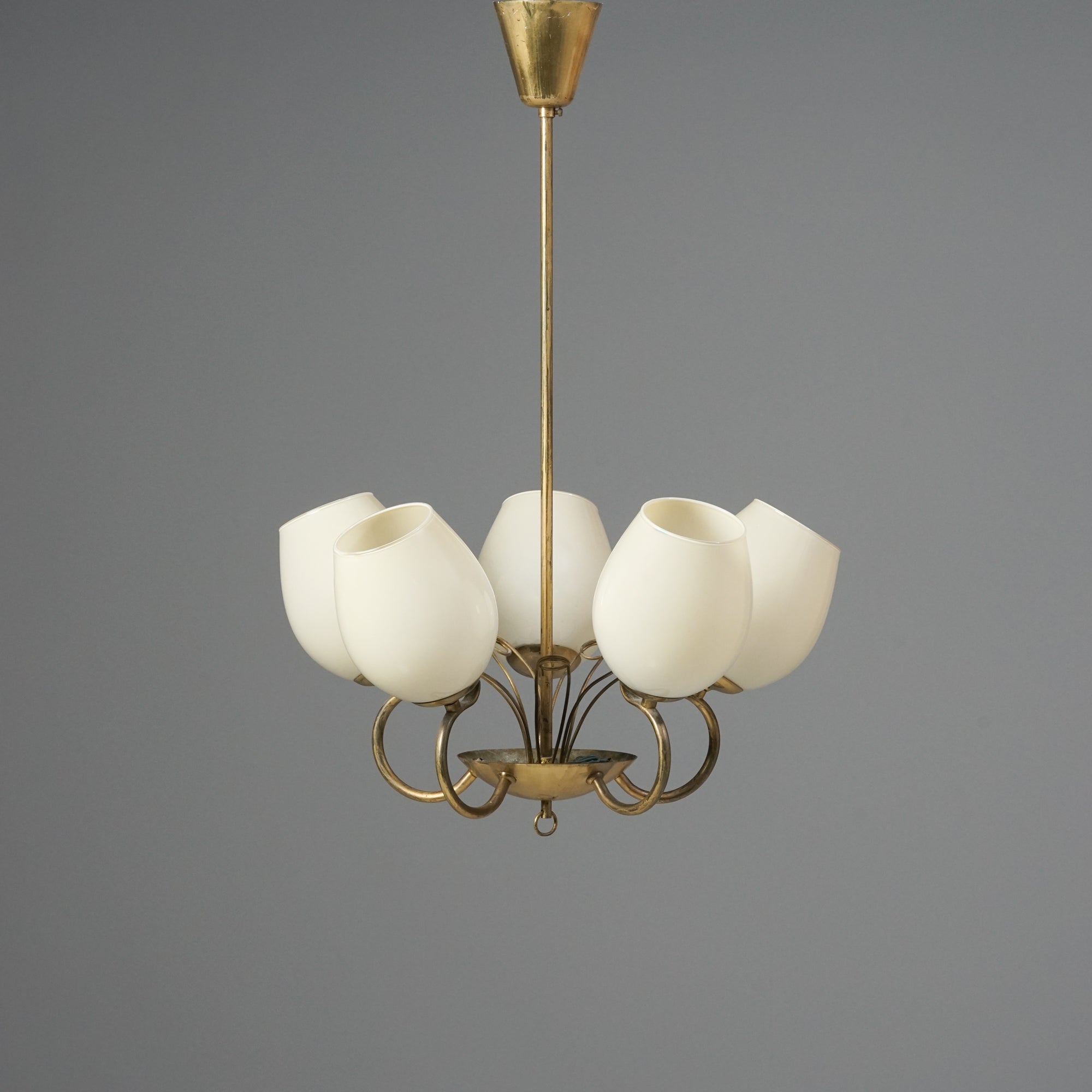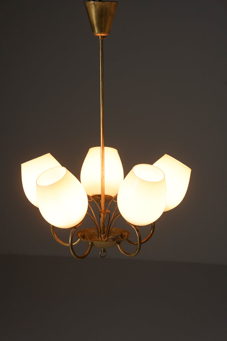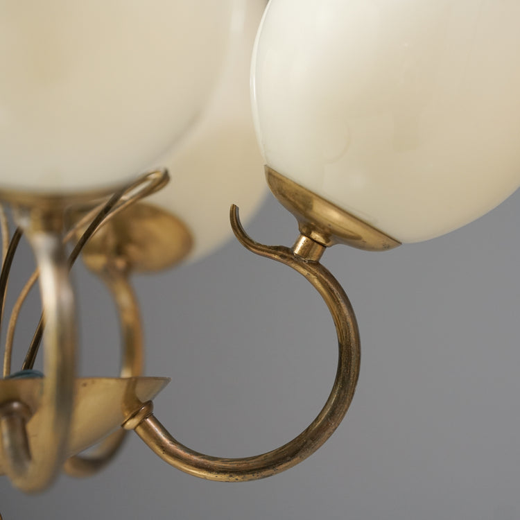 Kattovalaisin malli 50603, valmistanut Idman, 50-luku. Runko messinkiä, opaali lasikuvut. Hyvä kunto, ajan patinaa.