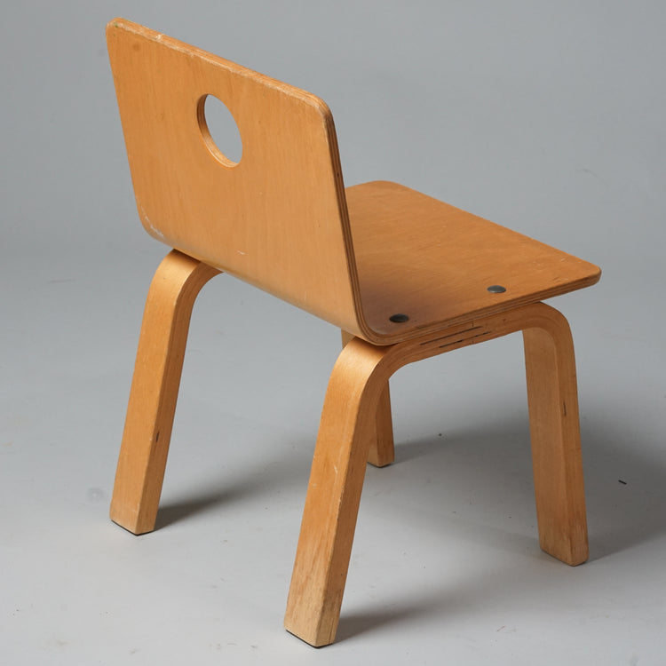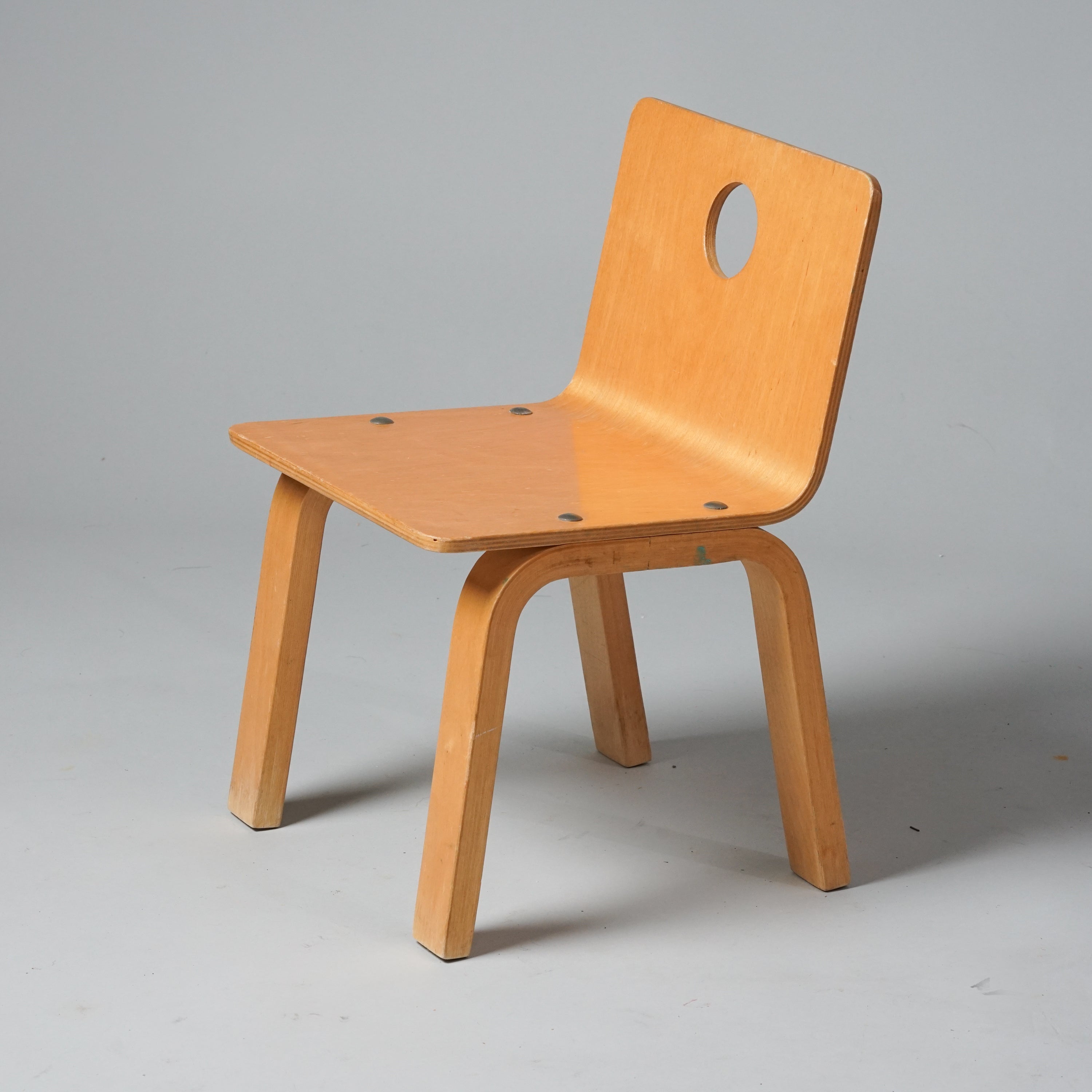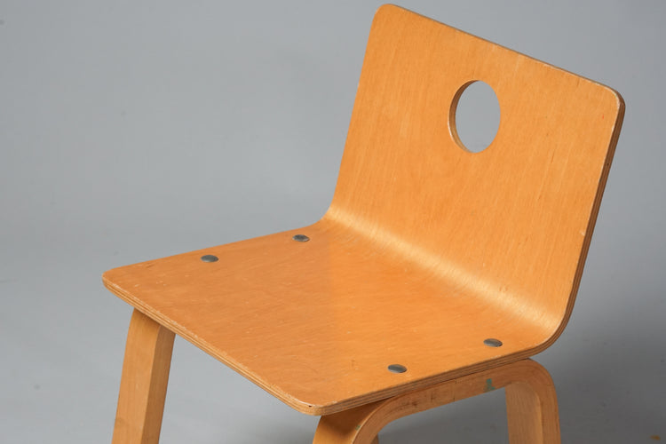 Lasten tuoli, design Cor Alons, valmistanut Gouda Den Boer, 30-luku. Koivuvaneria. Hyvä kunto, ajan patinaa ja pientä jälkeä.