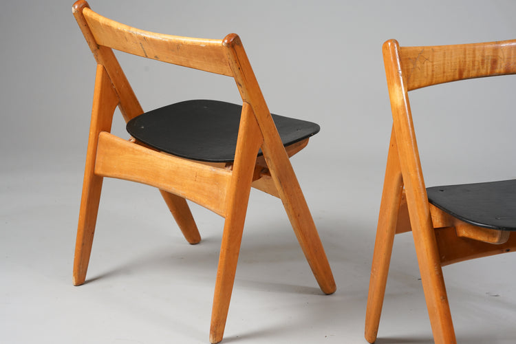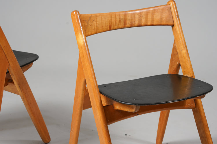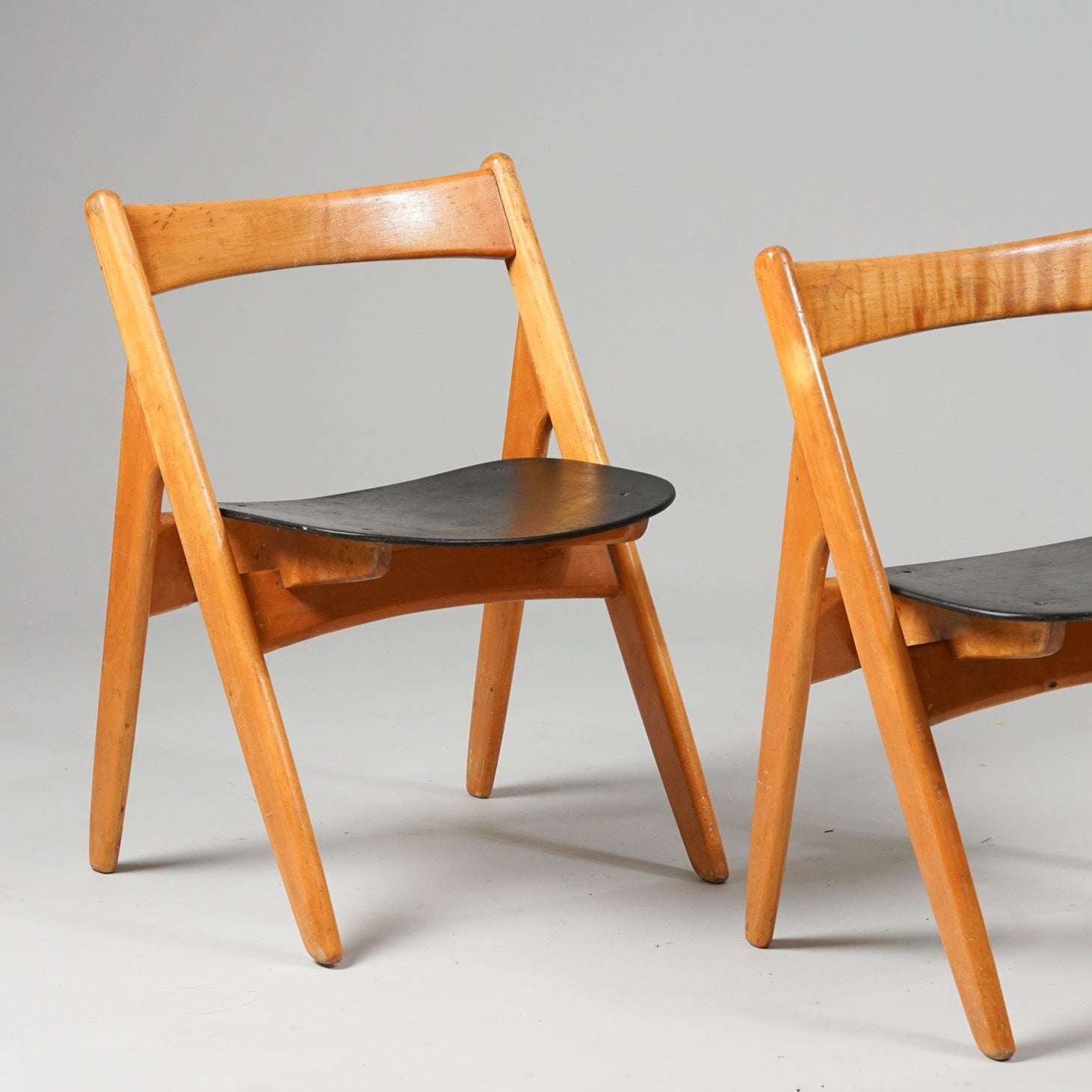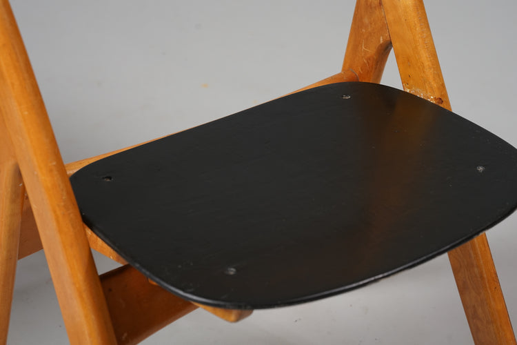 Lasten tuoli (1kpl jäljellä), Suunnittelija Carin Bryggman, 50-luku. Koivurunko, mustaksi maalattu istuin. Hyvä kunto, ajan patinaa.