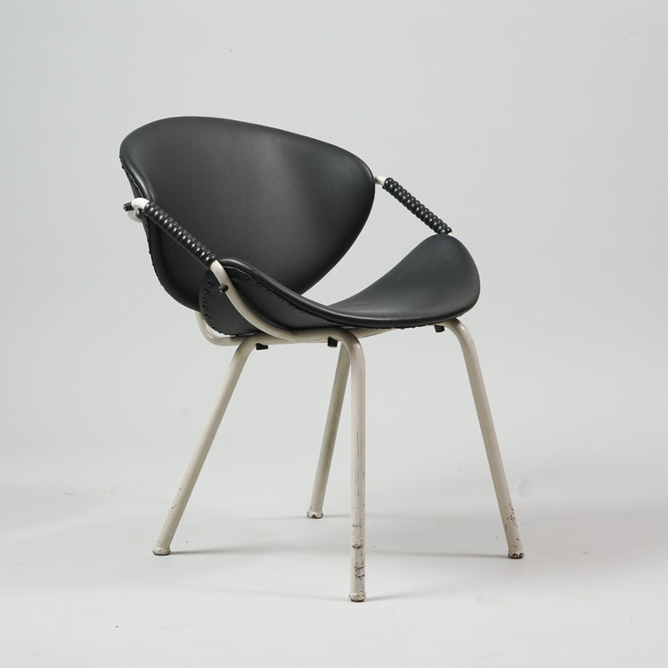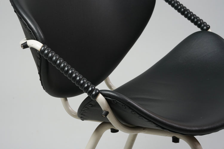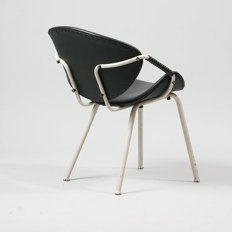 Nojatuoli malli TU-612, design Olof Kettunen, valmistanut J. Merivaara, 1900-luvun puoliväli, metallirunko, keinonahka istuin, muoviset kädensijat. Hyvä kunto, pientä ajan patinaa.