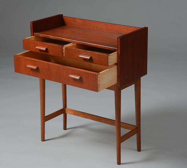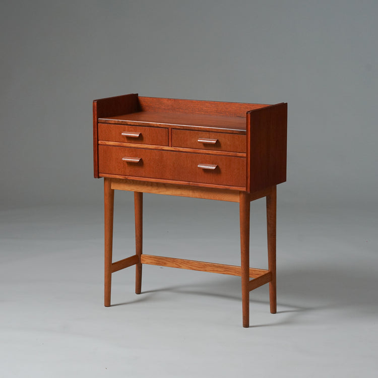 Pieni laatikosto, valmistettu Tanskassa, 60-luku. Tiikkiä ja tammea. Hyvä kunto, pientä ajan patinaa.