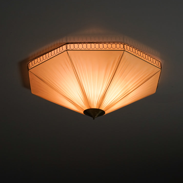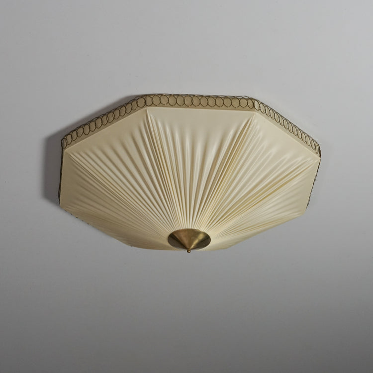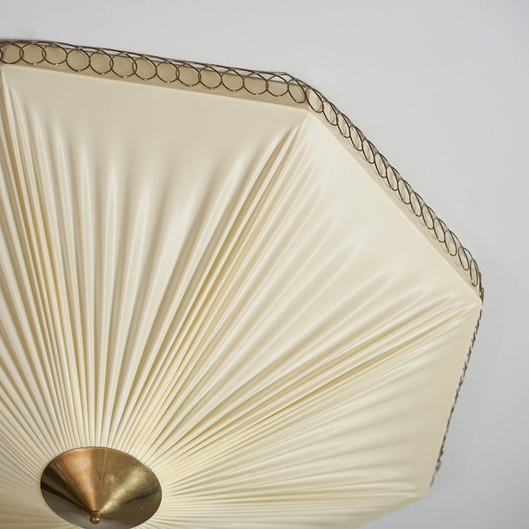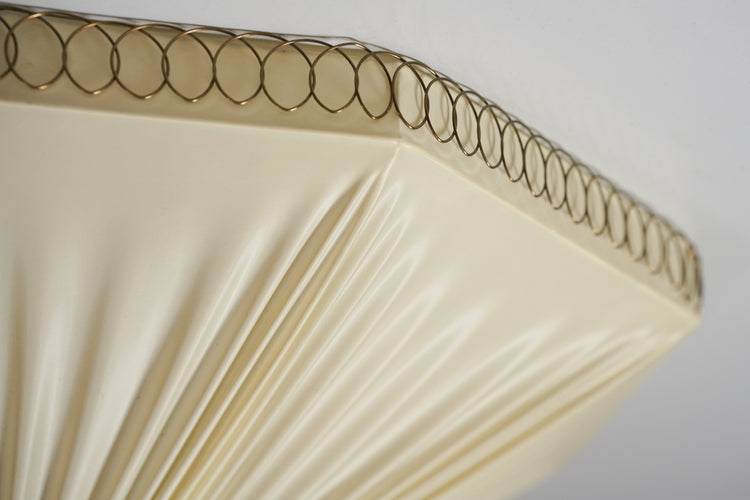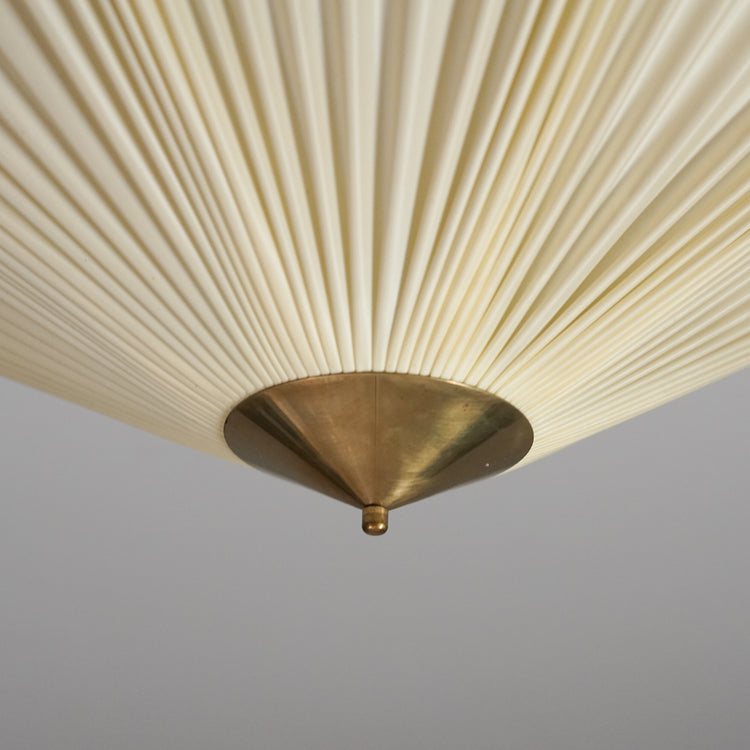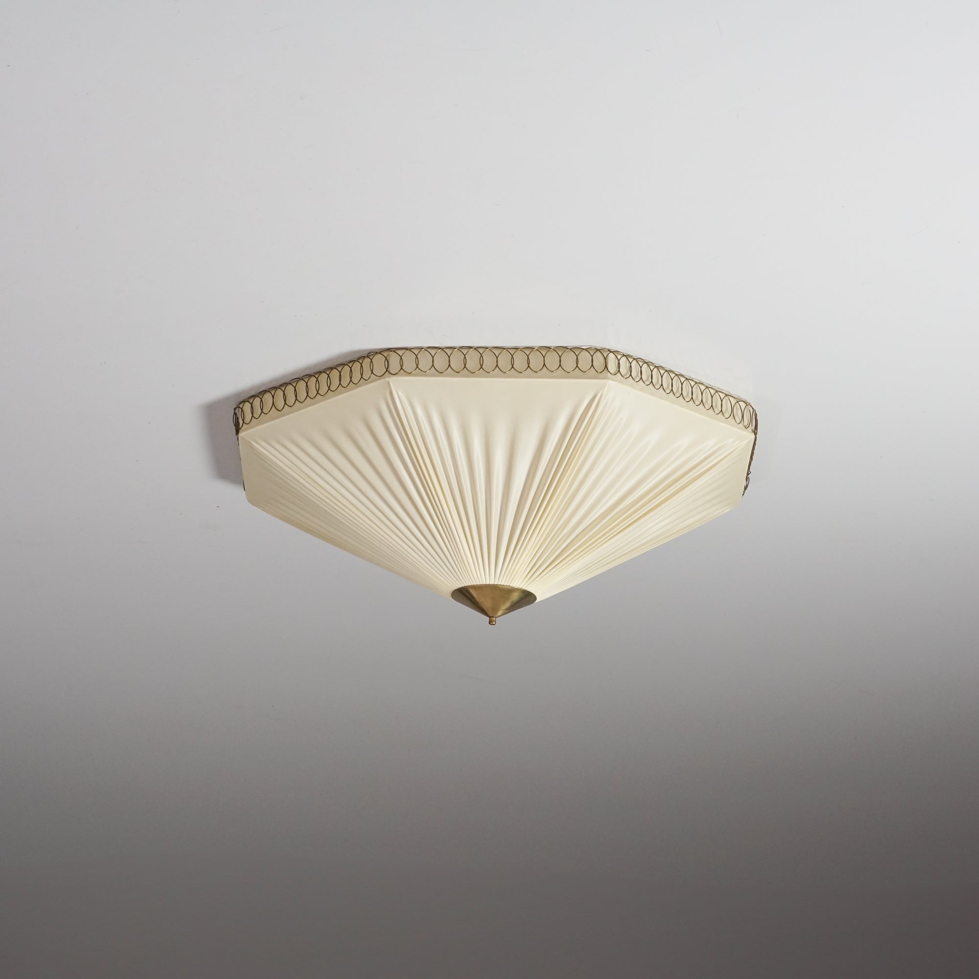 Plafondi malli ES 1901/70, valmistanut Itsu, 50-luku. Messinki yksityiskohdat, muovi varjostin. Leimattu. Hyvä kunto, pientä ajan patinaa.