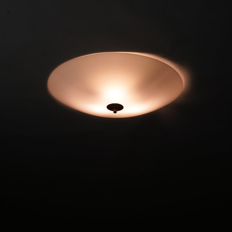 Plafondi, valmistanut Orno, 60-luku. Leimattu. Maitolasi kupu, messinki yksityiskohdat. Hyvä kunto, pientä ajan patinaa.