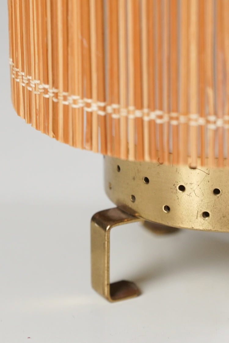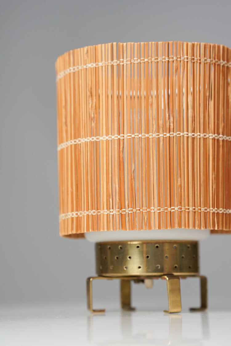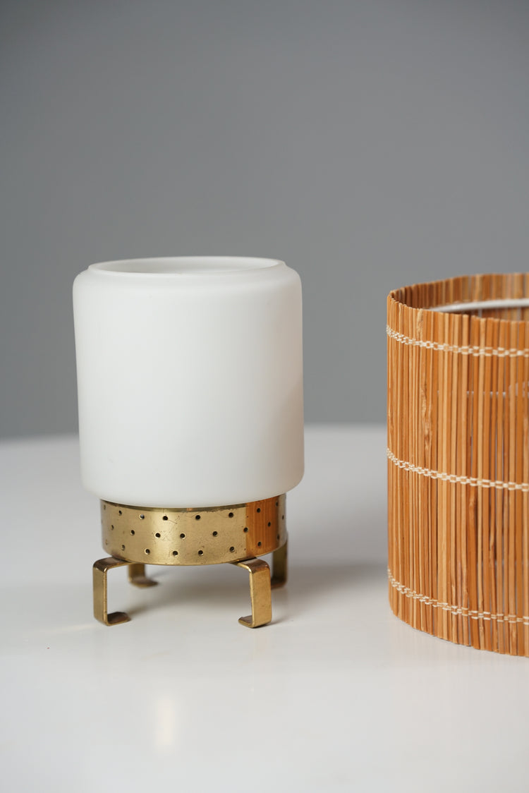 Pöytävalaisin malli 61071/1, valmistanut Idman, 50-luku, messinkiä, maitolasia, puusäle varjostin myöhemmin vaihdettu, hyvä kunto, pientä ajan patinaa. Leimattu.