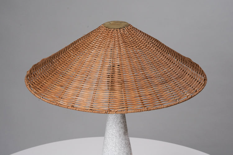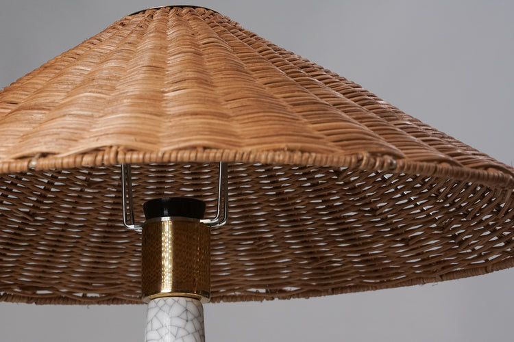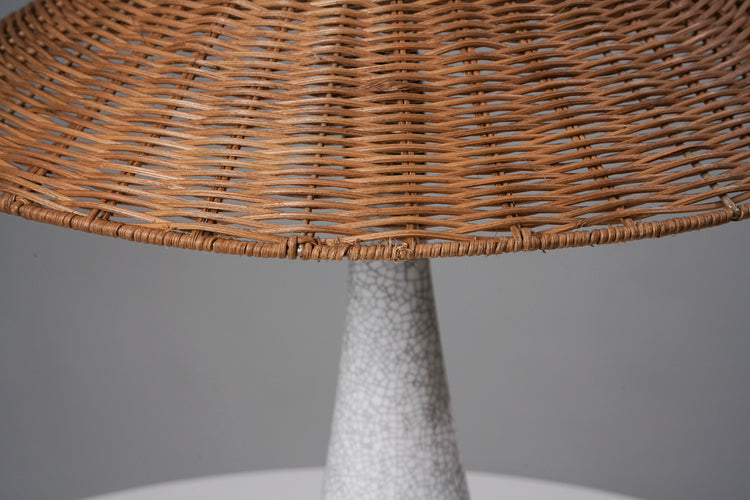 Pöytävalaisin, design Toini Muona, valmistanut Arabia, 50-luku, keraaminen runko, korivarjostin. Leimattu. Hyvä kunto, pientä ajan patinaa.