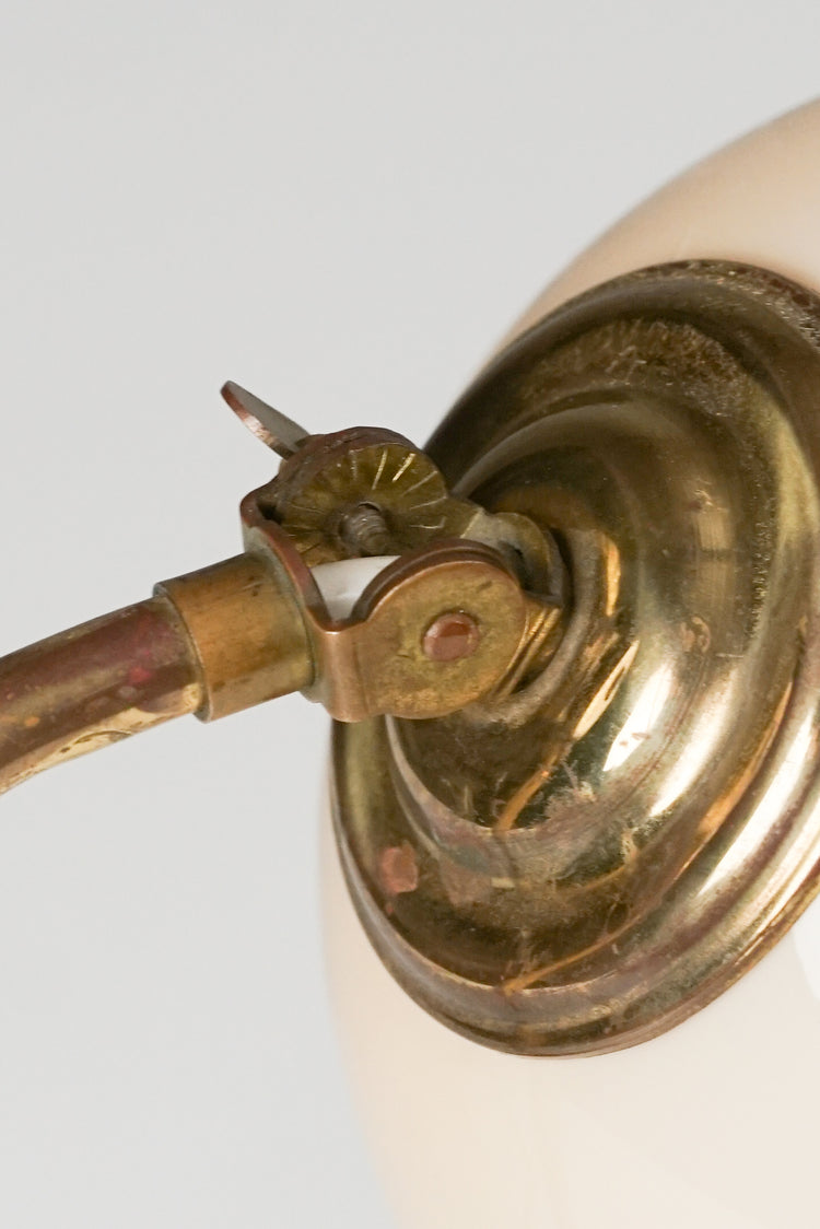 Seinä-/pöytävalaisin, valmistanut Itsu, 50-luku, opaalilasi kupu, messinkirunko, leimattu, hyvä kunto, pientä ajan patinaa.