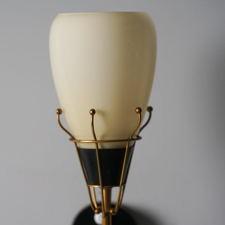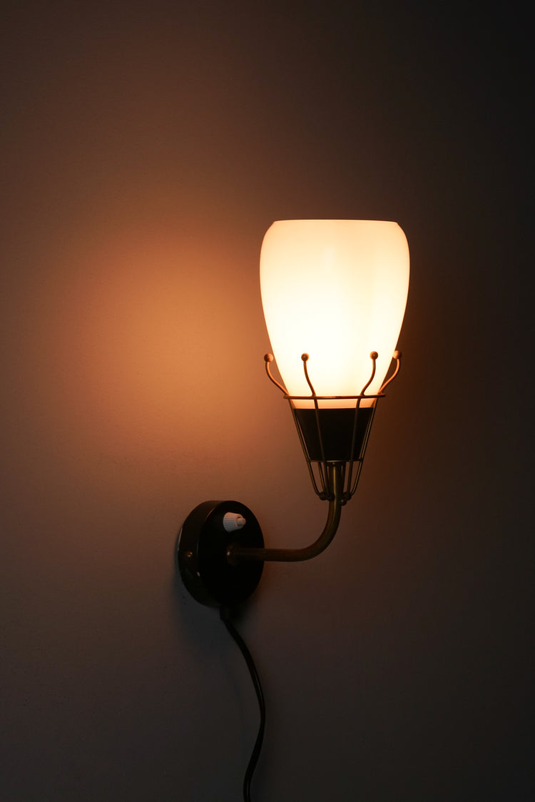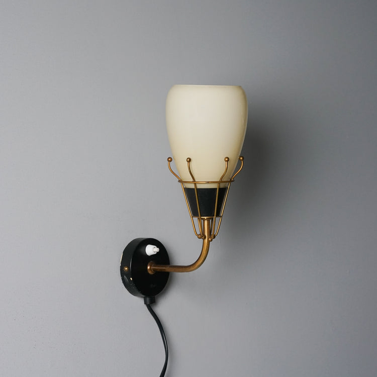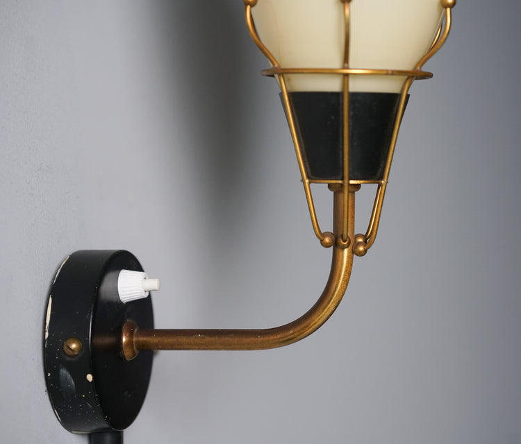 Seinävalaisin, design Maria Lindeman, valmistanut Idman, 50-luku. Maalattu metalli sekä messinki runko, opaalilasi kupu. Leimattu. Hyvä kunto, pientä ajan patinaa.