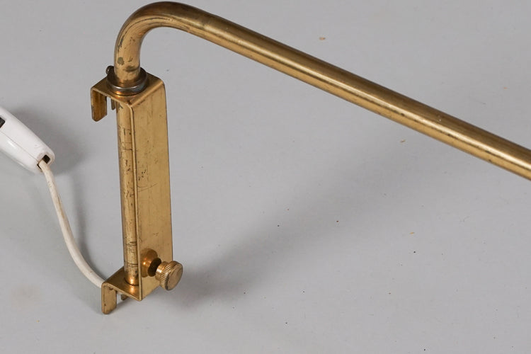 Seinävalaisin, valmistettu Suomessa, 50-luku, messinkirunko, muovivarjostin.