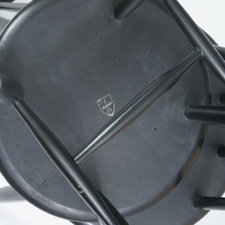Tuolit malli "Pirjo"/2049 (4 kpl myydään yhdessä), design Aulis Leinonen, valmistanut Asko, 60-luku. Maalattu puurunko. Myöhemmin uudelleen maalattu. Leimattu. Hyvä kunto, ajan patinaa ja pientä jälkeä. Tuolit myydään yhdessä settinä. Ilmoitettu hinta on settihinta.