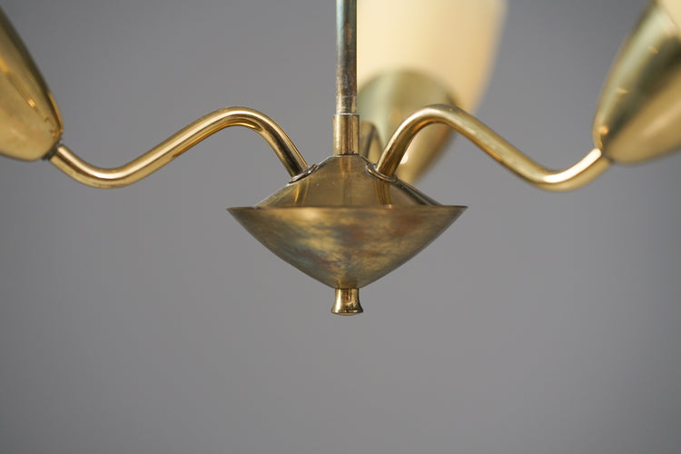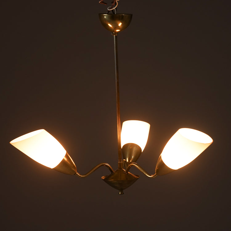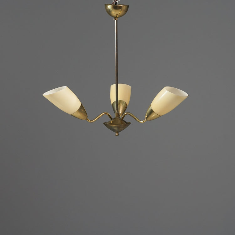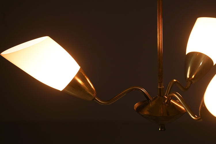 Kattovalaisin, valmistanut Itsu, 50-luku. Opaali lasikuvut, messinkirunko. Leimattu. Hyvä kunto, ajan patinaa.