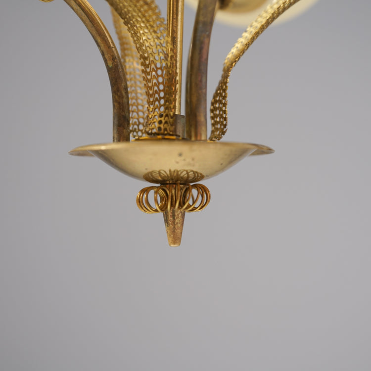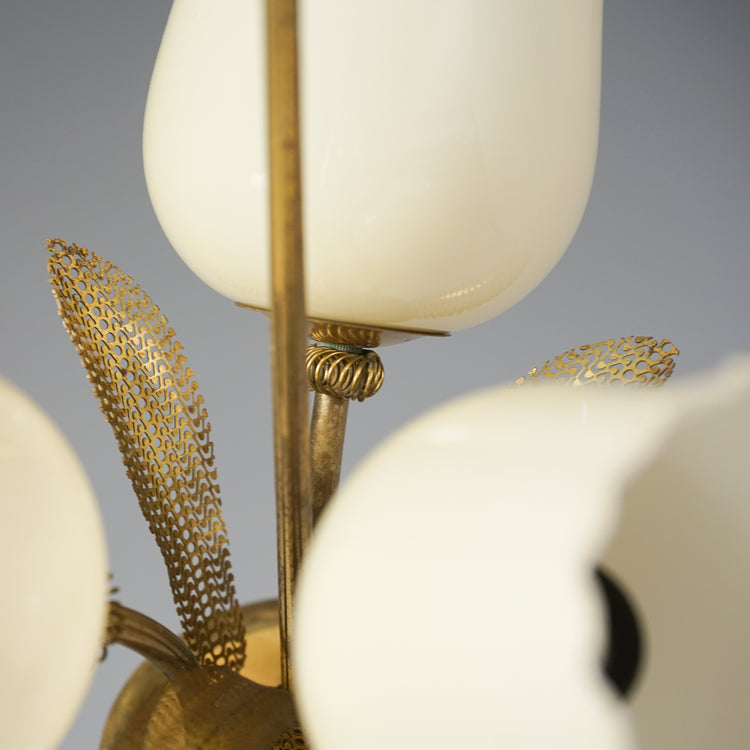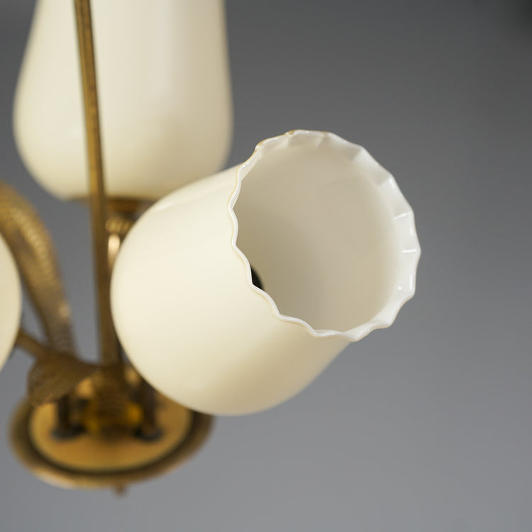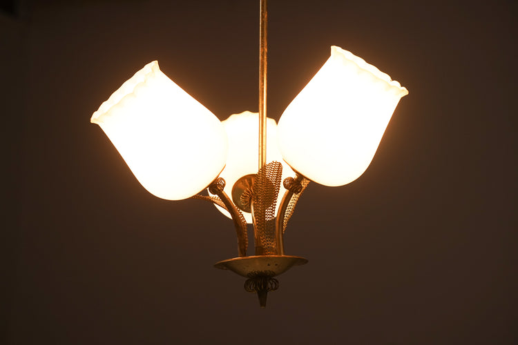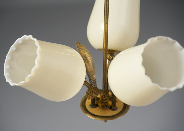 Kattovalaisin, valmistanut Itsu, 50-luku. Opaali lasi, messinkirunko, leimattu.