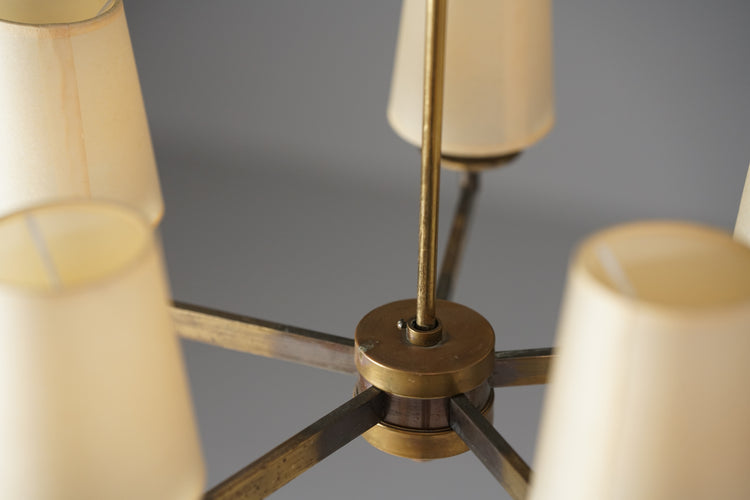 Kattovalaisin malli 3023, design Paavo Tynell, valmistanut Taito Oy, 30/40-luku. Messinki runko, paperiset varjostimet. Hyvä kunto, ajan patinaa.