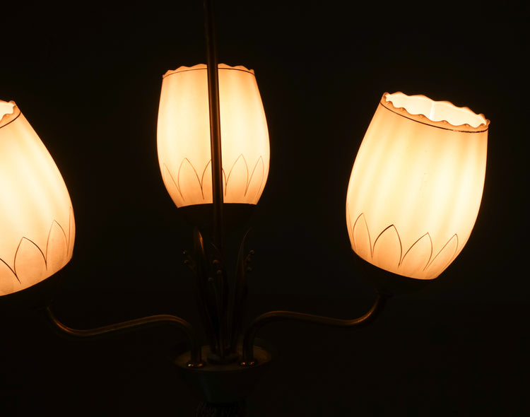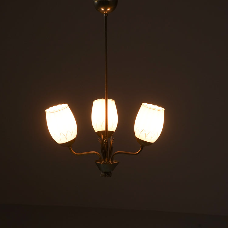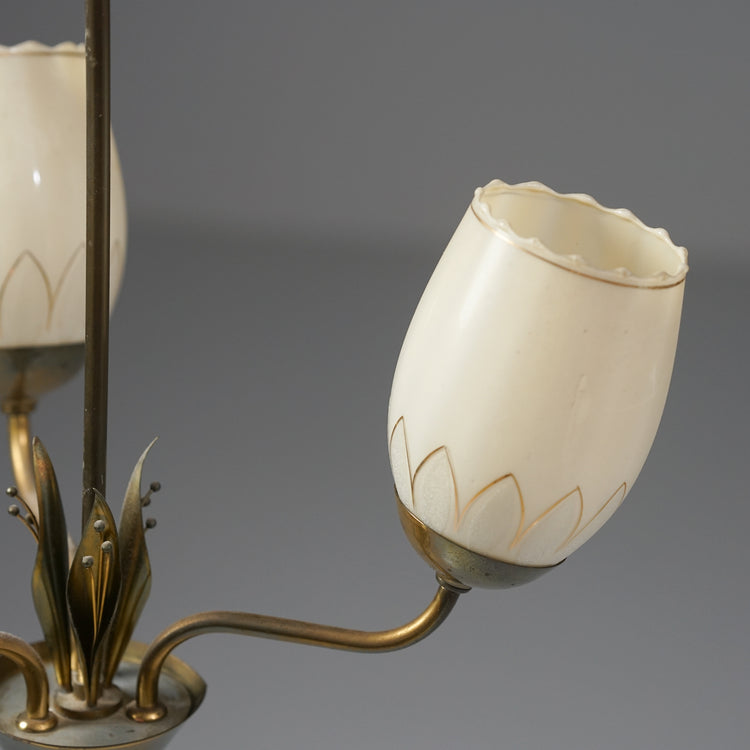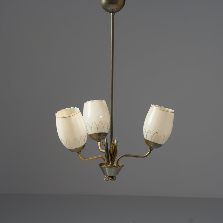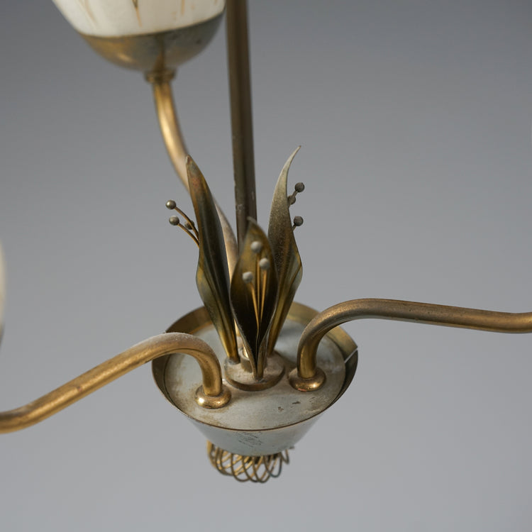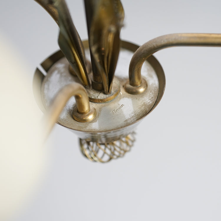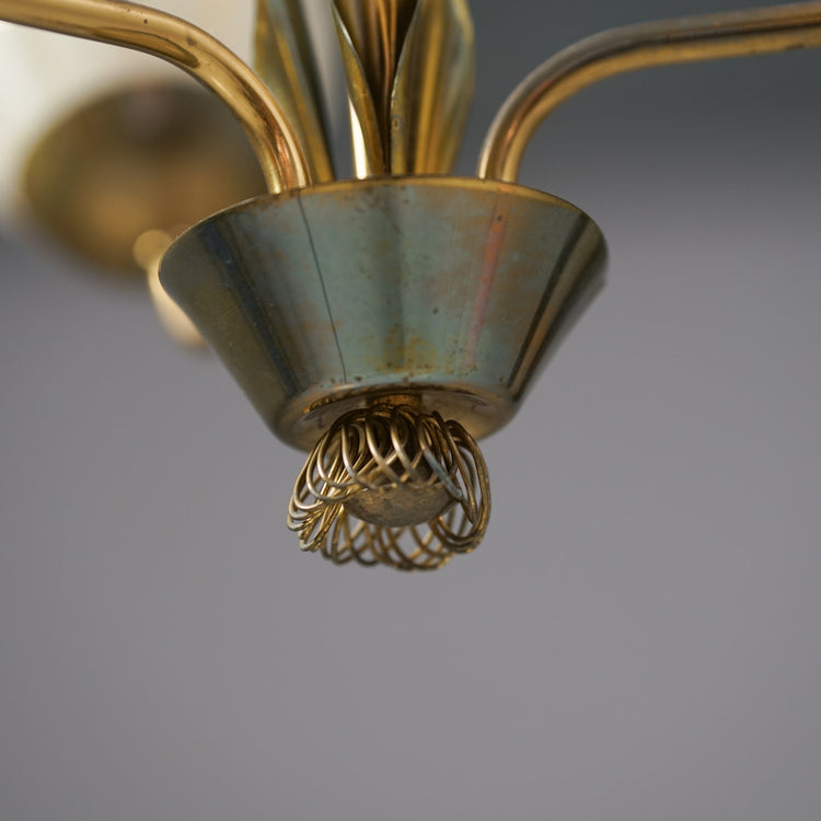 Kattovalaisin, design Mauri Almari, valmistanut Idman, 50-luku. Messinkirunko, opaalilasilla koristellut lasikuvut. Hyvä kunto, pientä ajan patinaa.