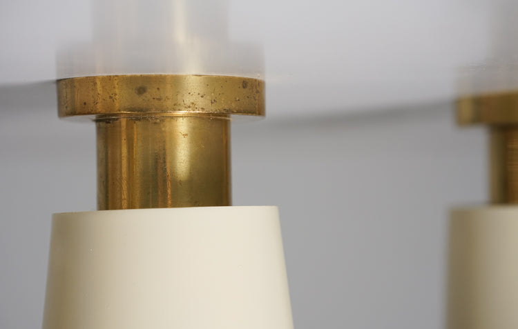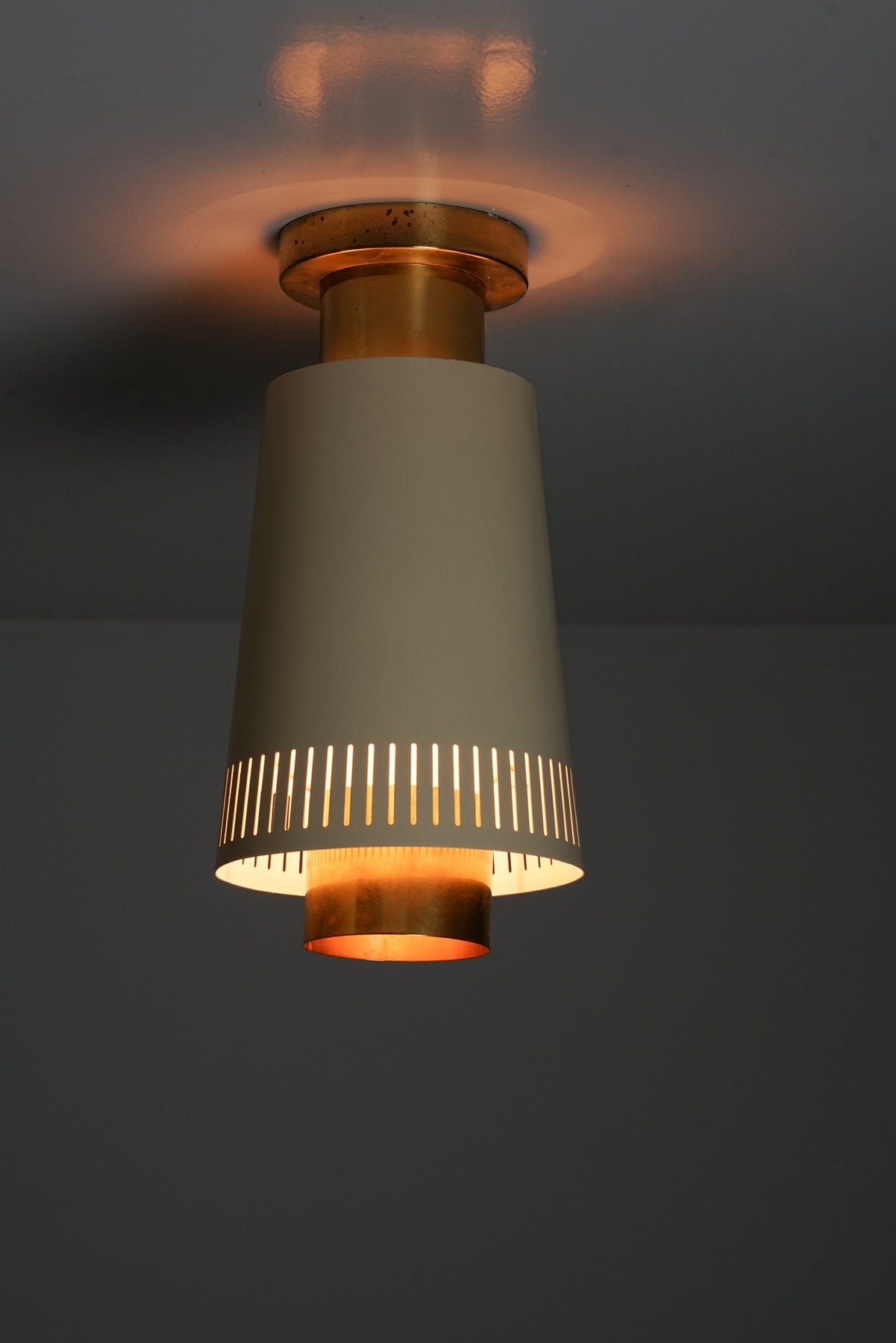 Malli 9067 kattovalaisimet (3 kpl myydään yhdessä), design Paavo Tynell, valmistanut Taito Oy, 50-luku. Messinkiä ja maalattua metallia. Leimattu. Hyvä kunto, ajan patinaa. Kattovalaisimet myydään yhdessä. Ilmoitettu hinta on settihinta.