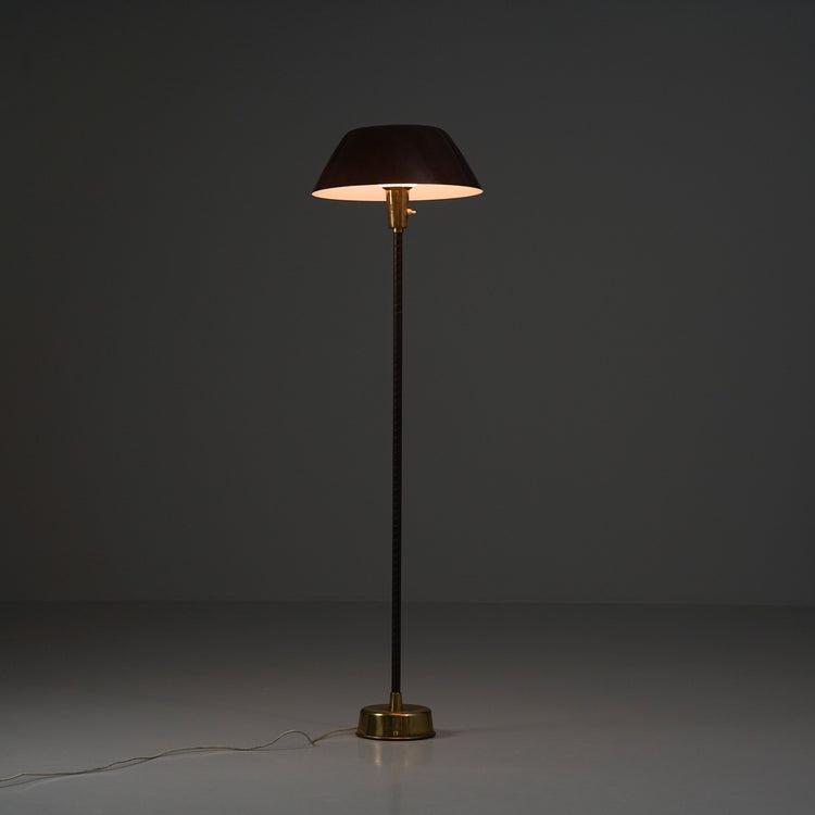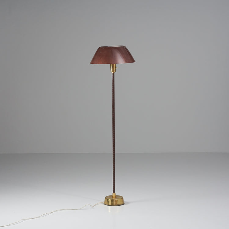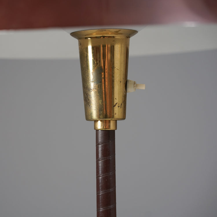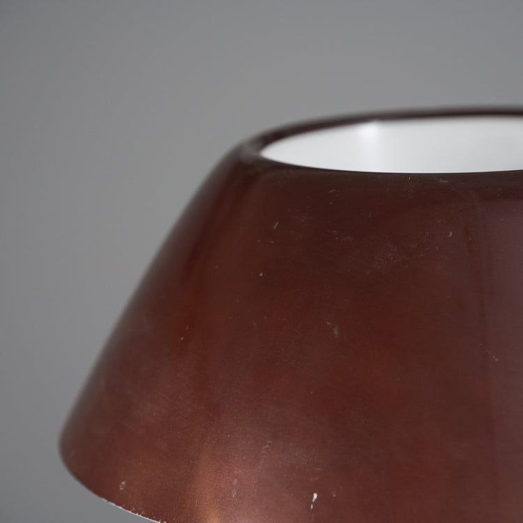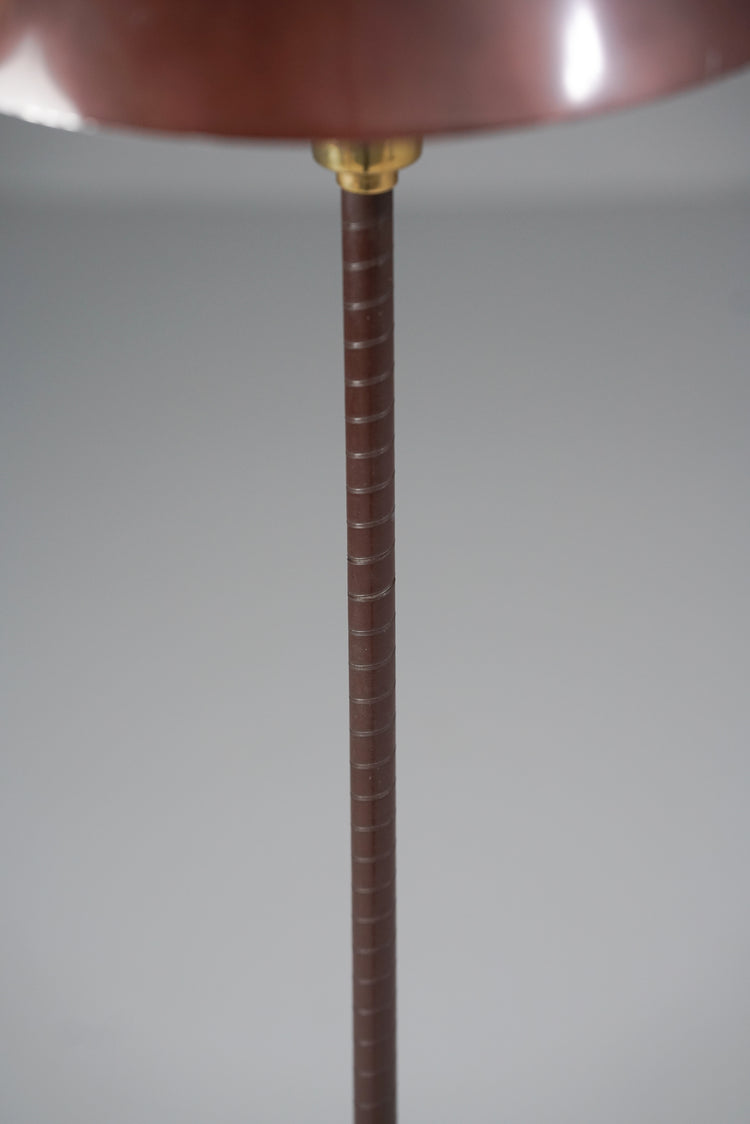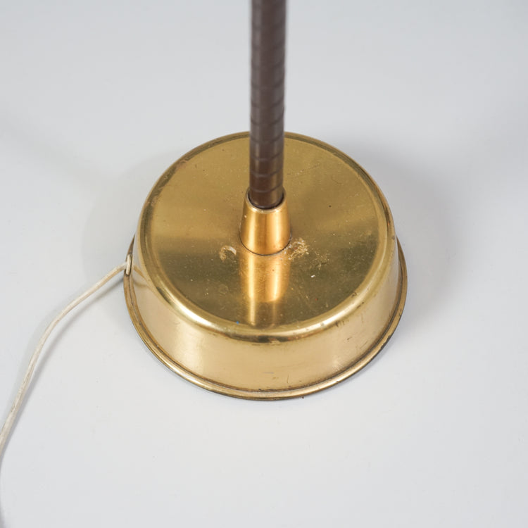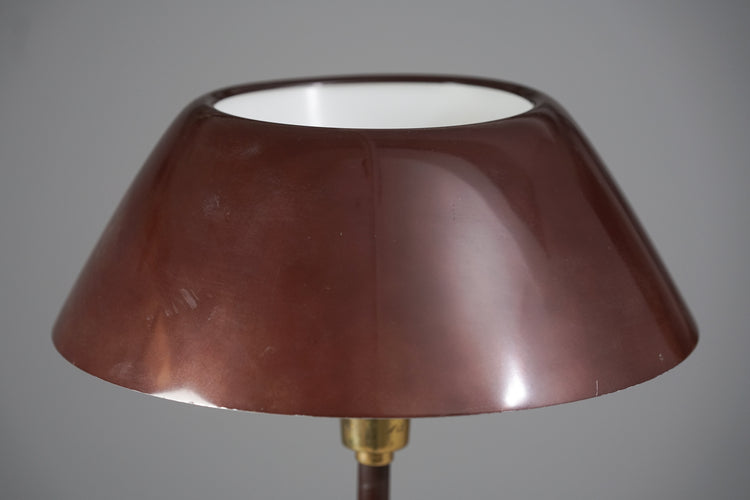 Malli "Ihanne"/"Senator" lattiavalaisin, design Lisa Johansson-Pape, valmistanut Orno, 50-luku. Runko kerniä ja messinkiä, varjostin maalattua metallia. Hyvä kunto, runsasta patinaa varjostimessa.