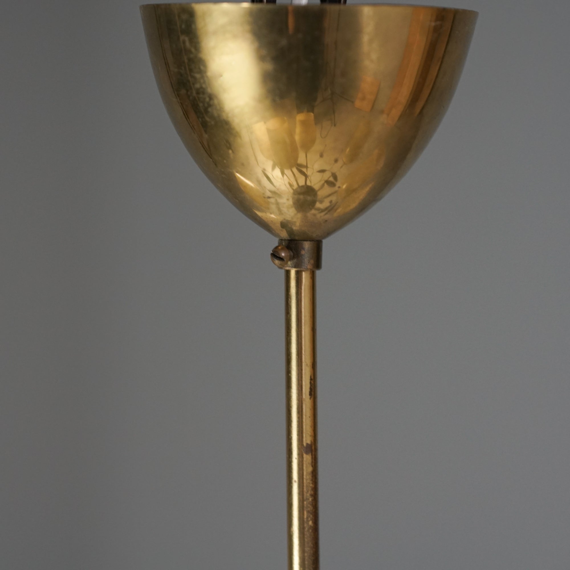 Harvinainen malli 85/9 kattokruunu, valmistanut Itsu, 50-luku. Runko messinkiä, opaali lasikuvut, upeat messinkiset kukkakoristeet. Leimattu. Hyvä kunto, pientä ajan patinaa.