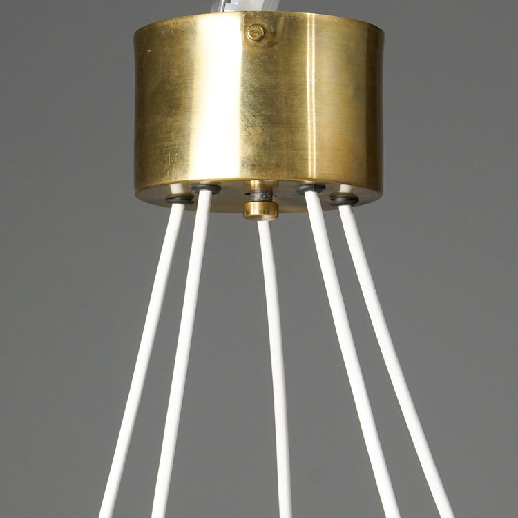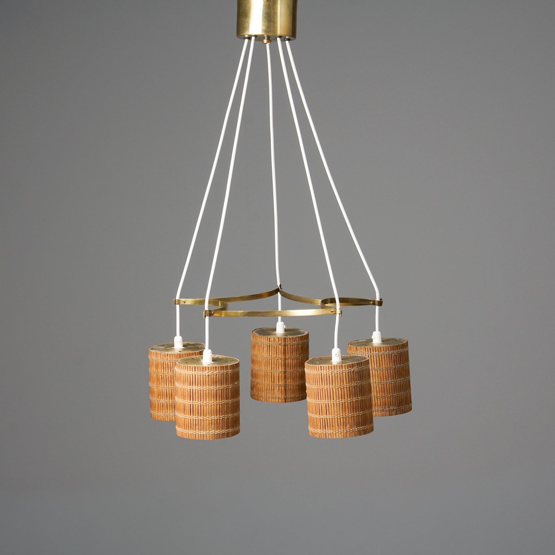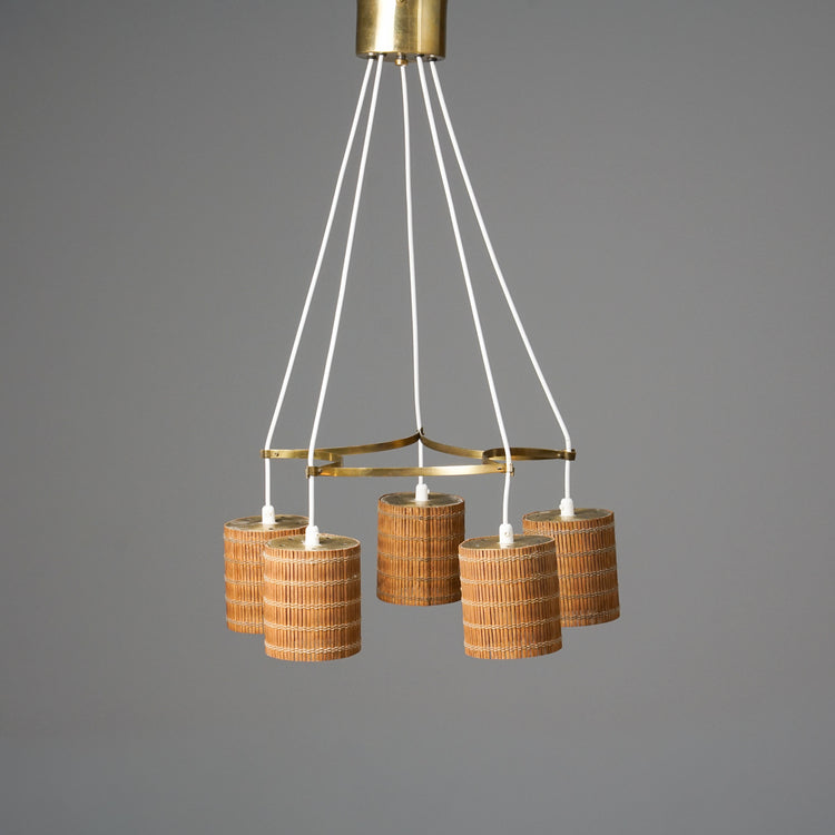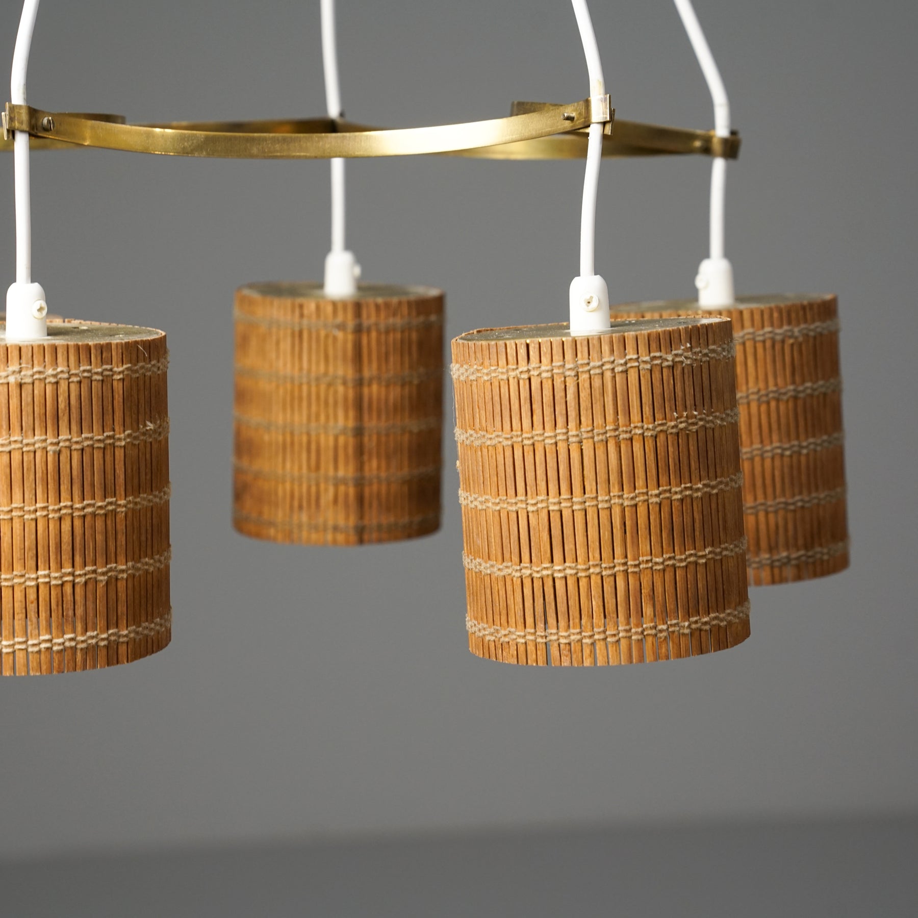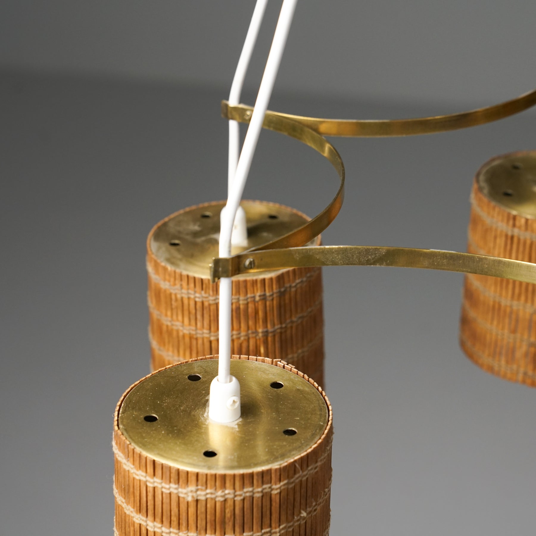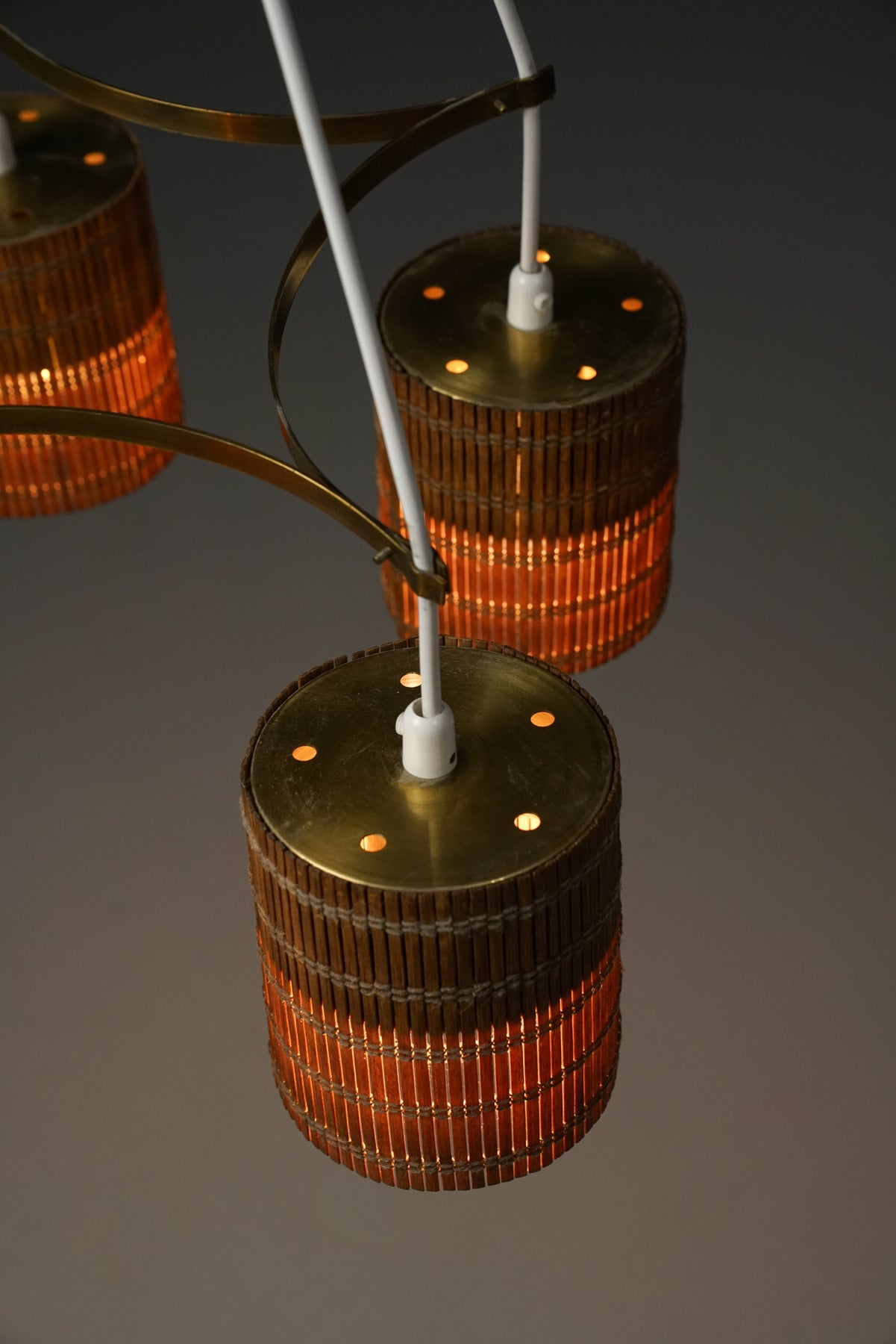 Kattovalaisin, 60-luku. Runko messinkiä, myöhemmin uusitut puusäle varjostimet. Hyvä kunto, pientä ajan patina.