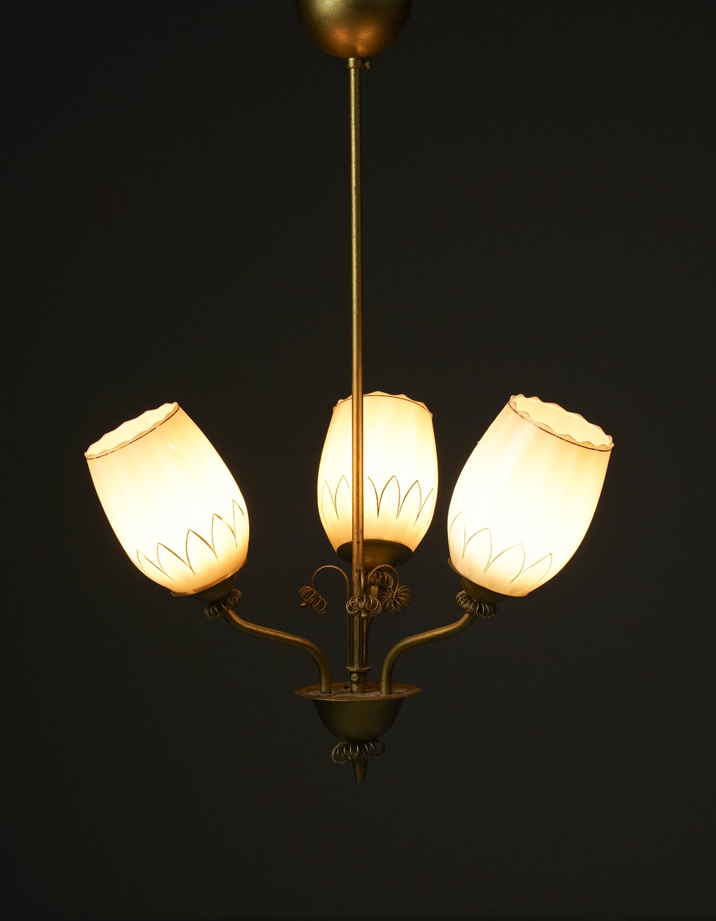 Kattovalaisin, valmistanut Itsu, 50-luku. Runko messinkiä, lasikuvut. Leimattu. Hyvä kunto, pientä ajan patinaa.