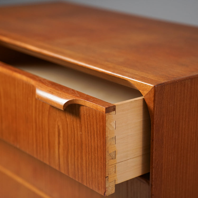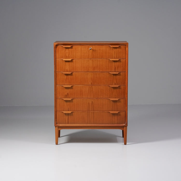Laadukas laatikosto, valmistettu Tanskassa, 60-luku. Tiikkiä. Hyvä kunto, pientä ajan patinaa.