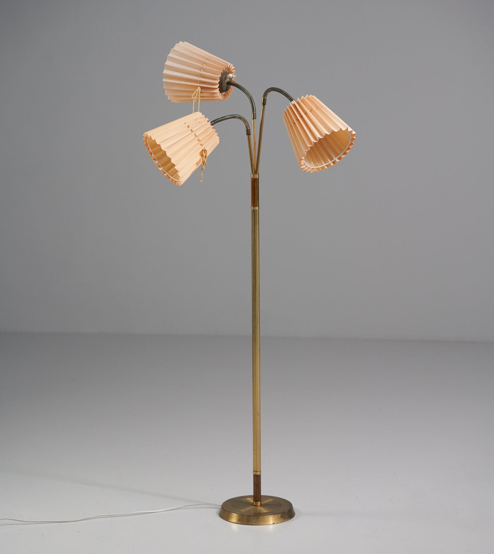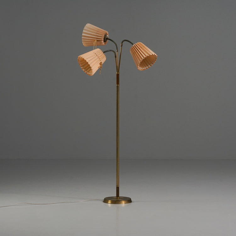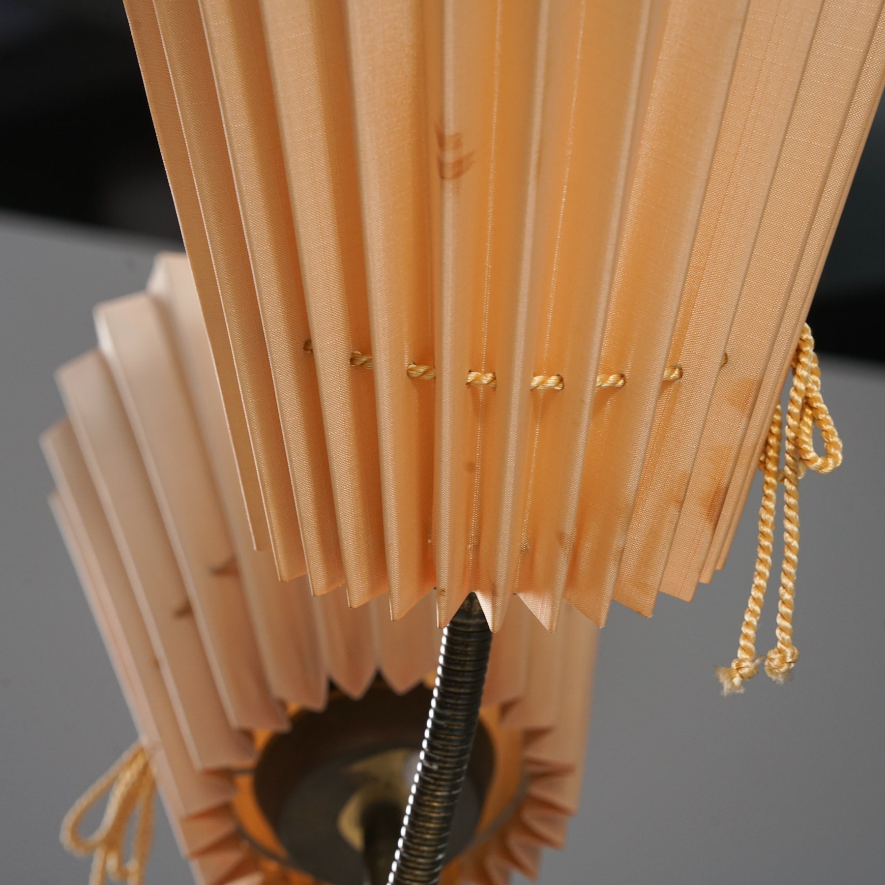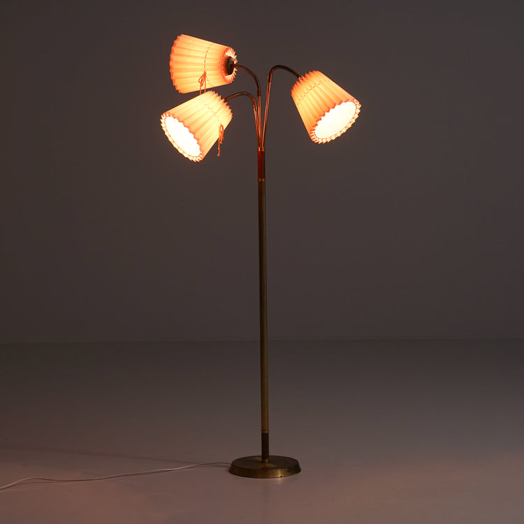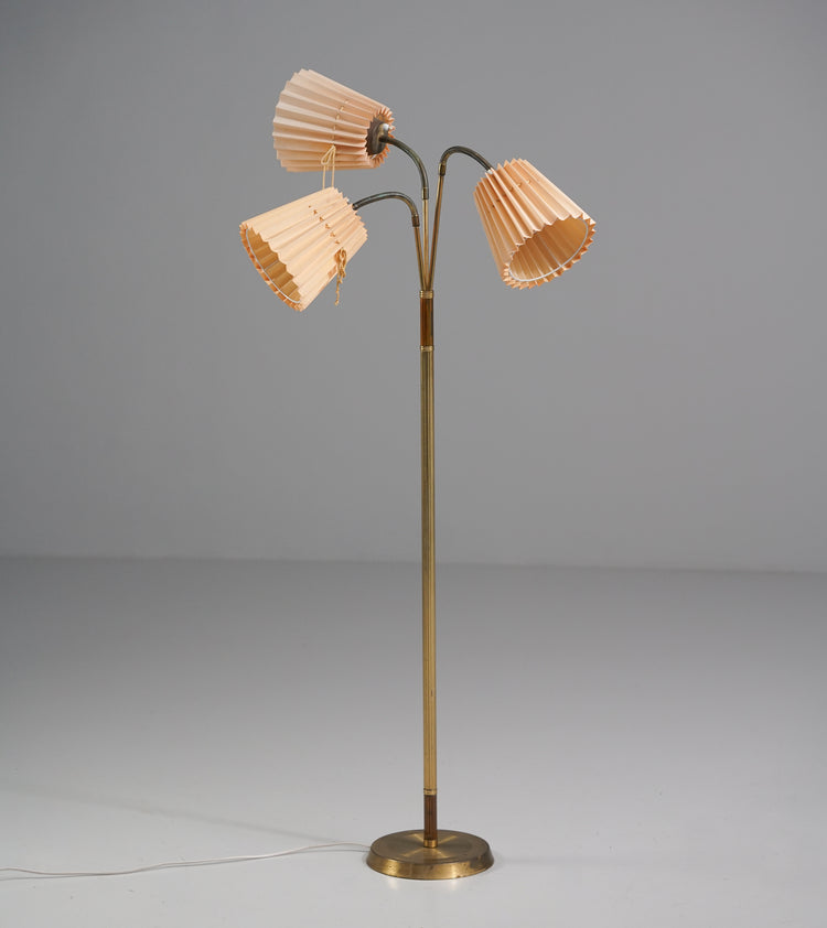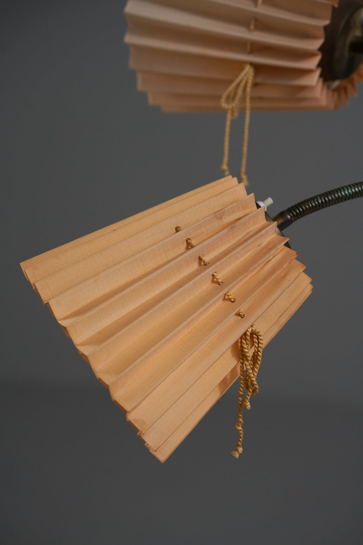 Lattiavalaisin, valmistettu Suomessa, 50-luku. Runko messinkiä, kangasvarjostimet. Varjostimien suuntaa mahdollista säädellä. Hyvä kunto, ajan patinaa ja jälkeä. Varjostimissa pieniä tahroja.