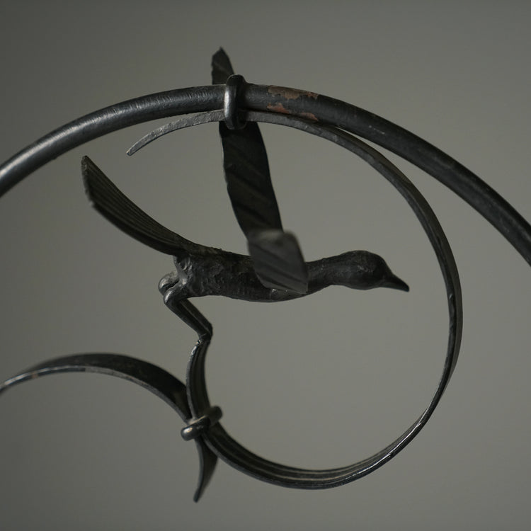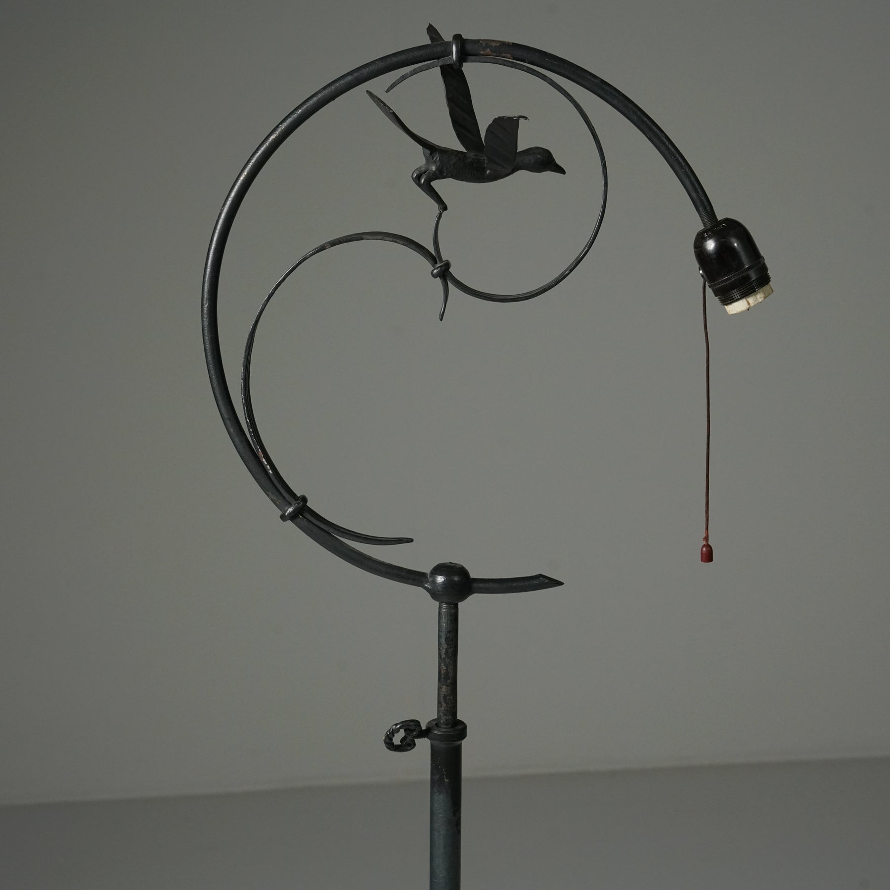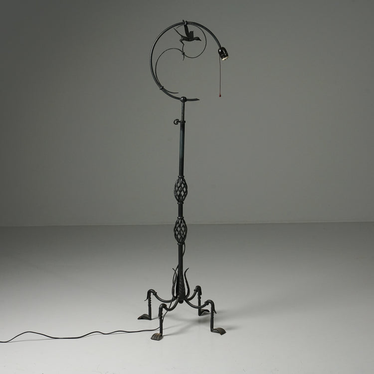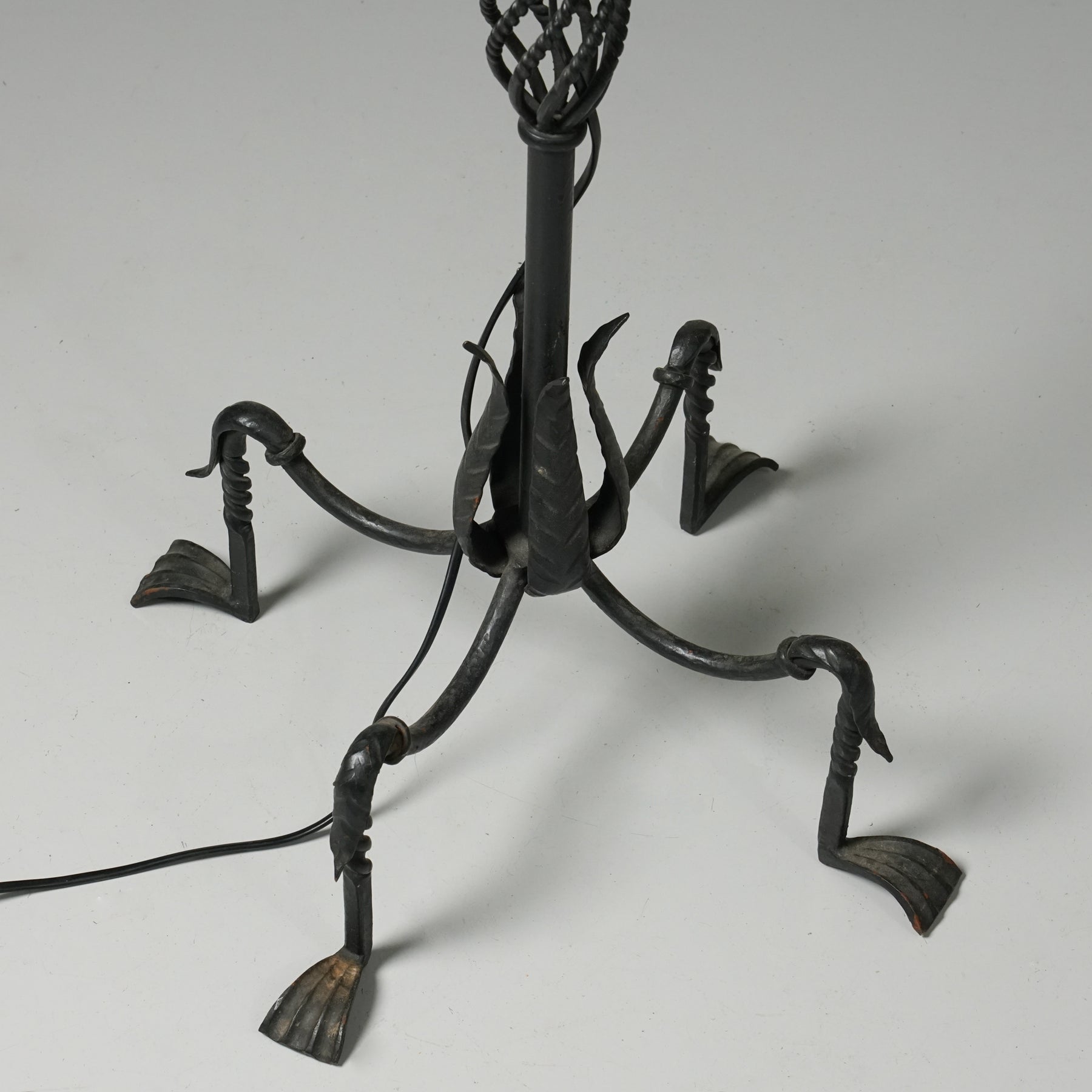 Lattiavalaisin, valmistanut Taidetakomo Hakkarainen, 1900-luvun alku. Takorautaa. Hyvä kunto, pientä ajan patinaa.