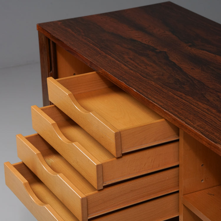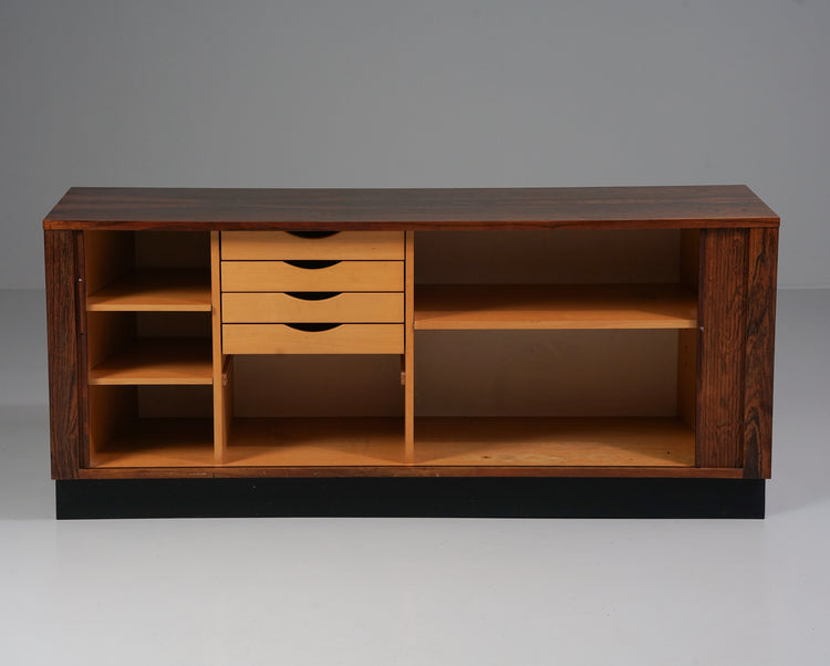 Malli Formula senkki, design Olof Ottelin, valmistanut Oy Stockmann AB, 60-luku. Palisanteria. Runko maalattua puuta. Sisällä neljä vetolaatikkoa ja hyllyjä. Hyllykorkeus säädettävä. Takalevyssä pieni reikä johdoille. Hyvä kunto, ajan patinaa ja jälkeä eritoten hyllyissä ja laatikoissa.