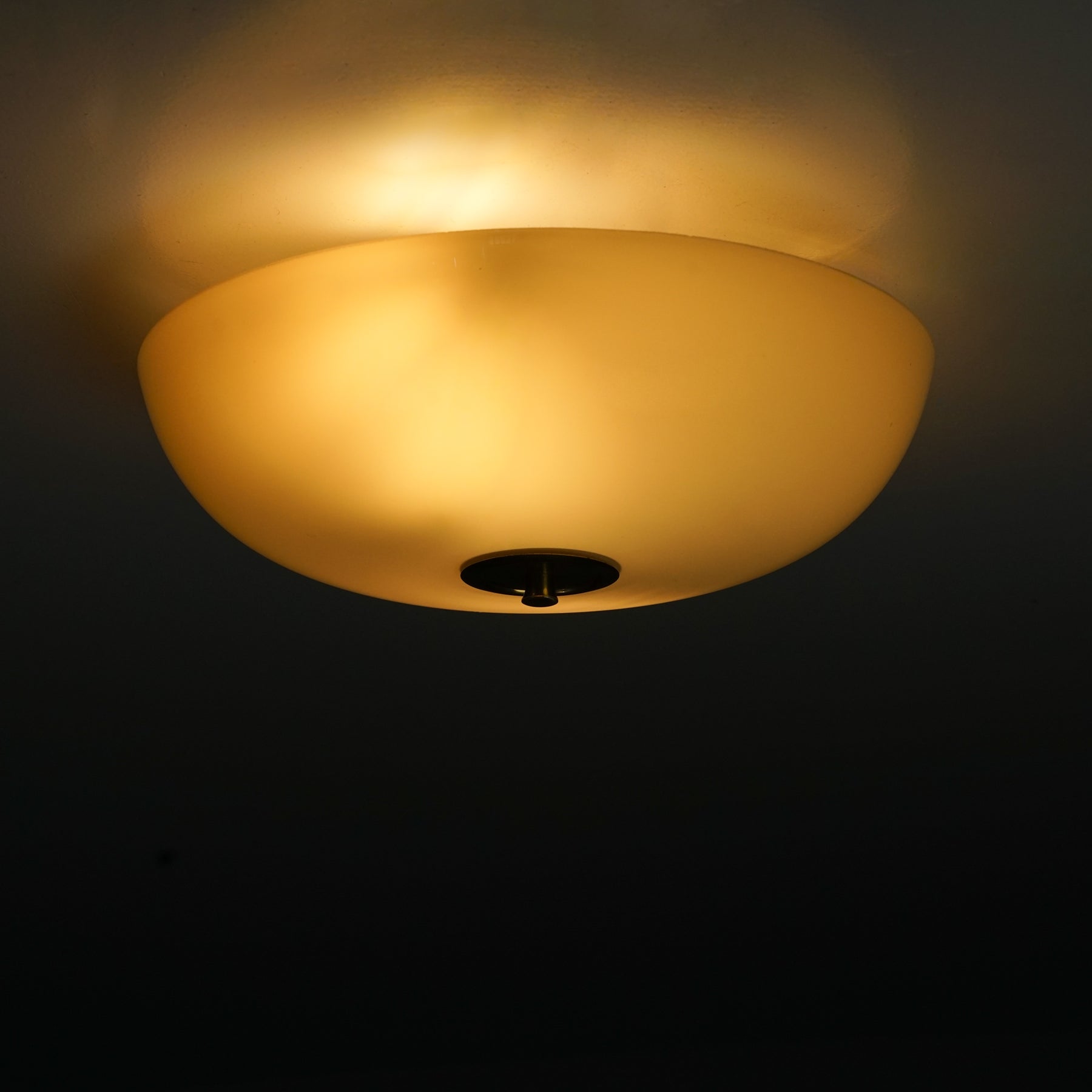 Plafondi, valmistanut Itsu, 50-luku. Lasia ja messinkiä. Hyvä kunto, pientä ajan patinaa.