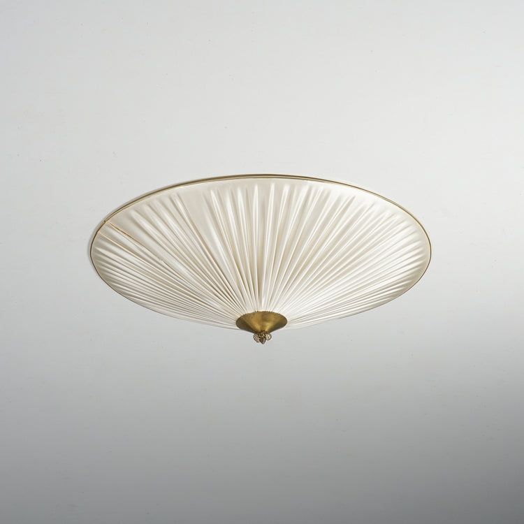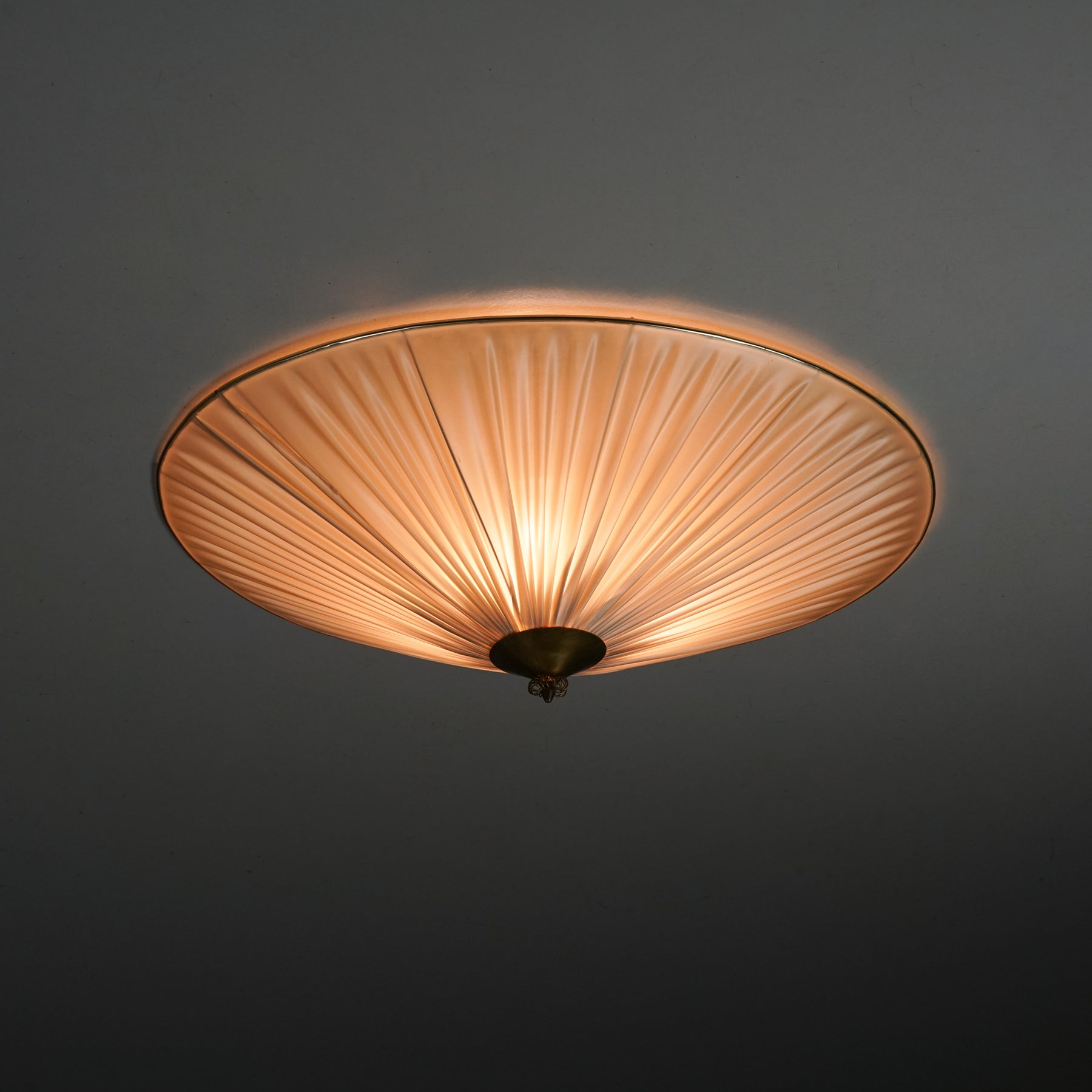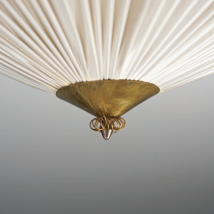 Plafondi, valmistettu Suomessa, 50-luku. Silkkiä ja messinkiä. Hyvä kunto, pientä ajan patinaa.