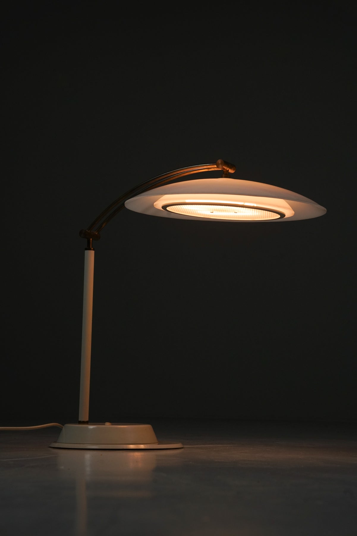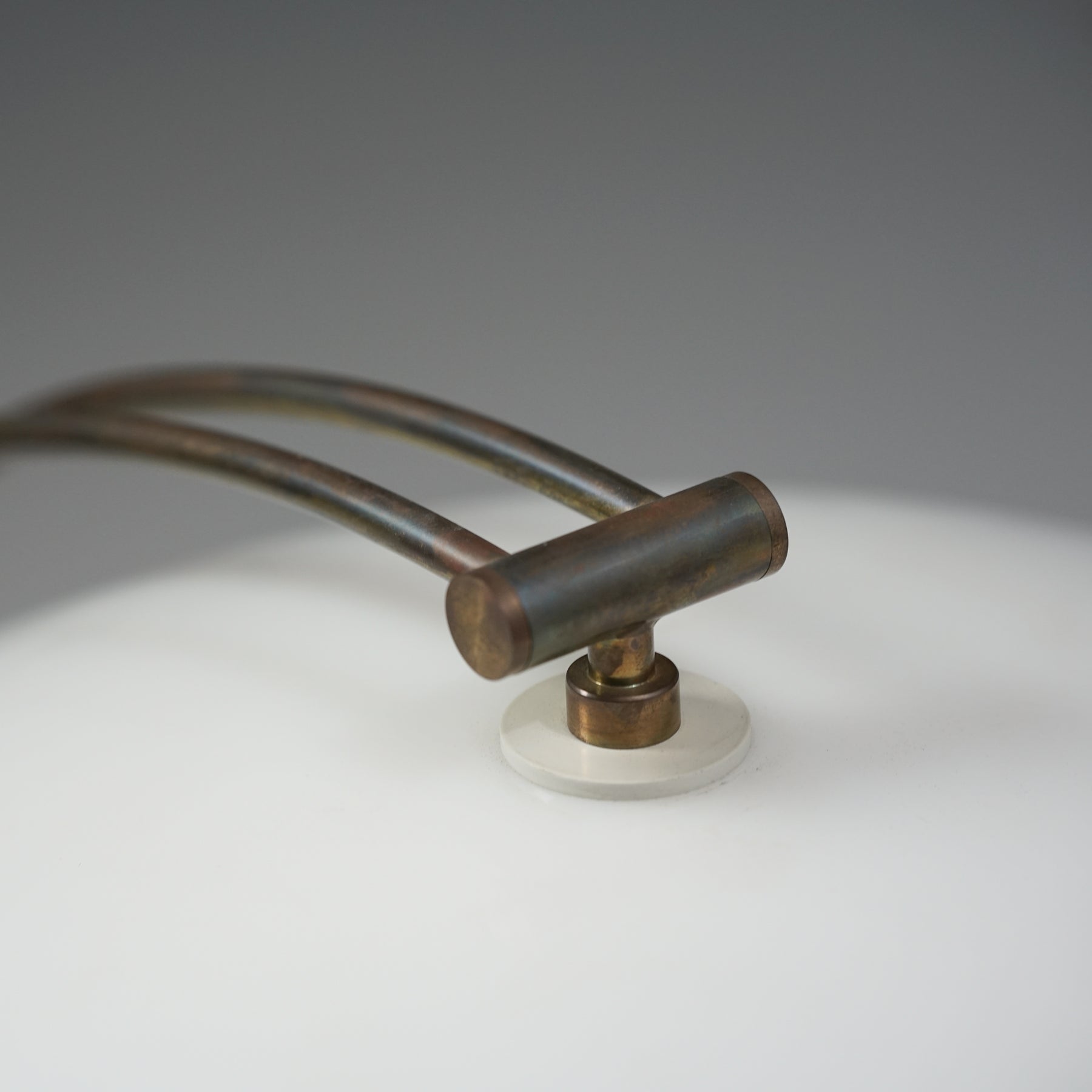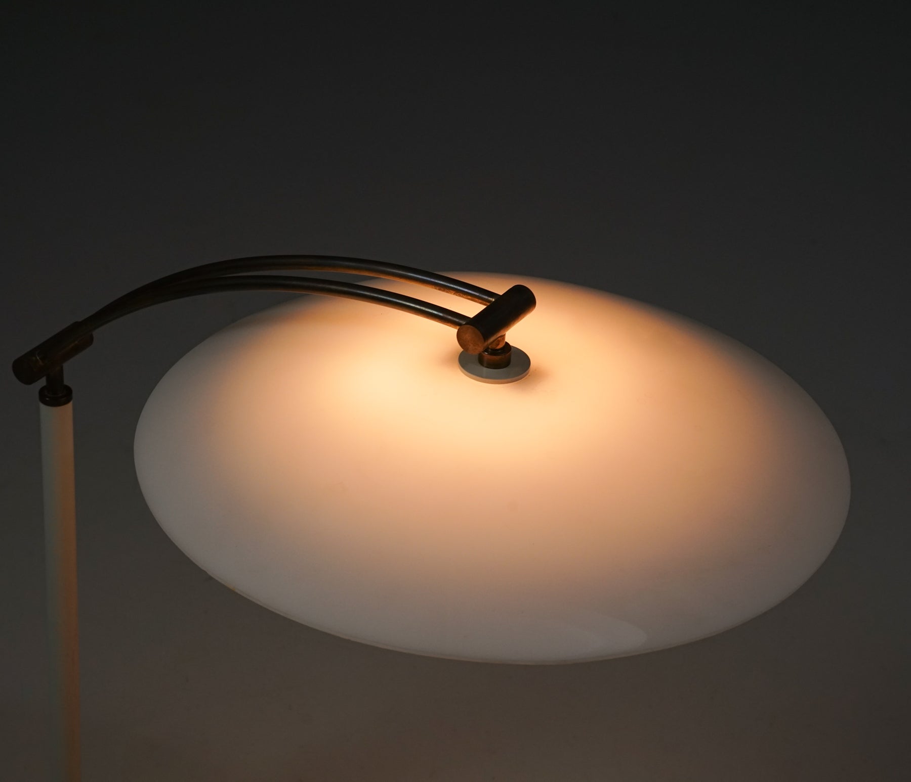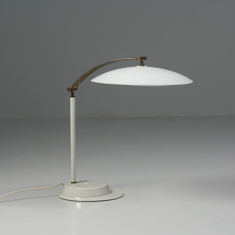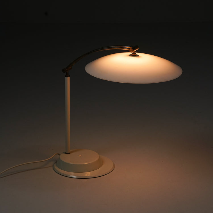 Pöytävalaisin, 1900-luvun loppupuoli. Metallia, akryyliä ja messinkiä. Hyvä kunto, pientä ajan patinaa.
