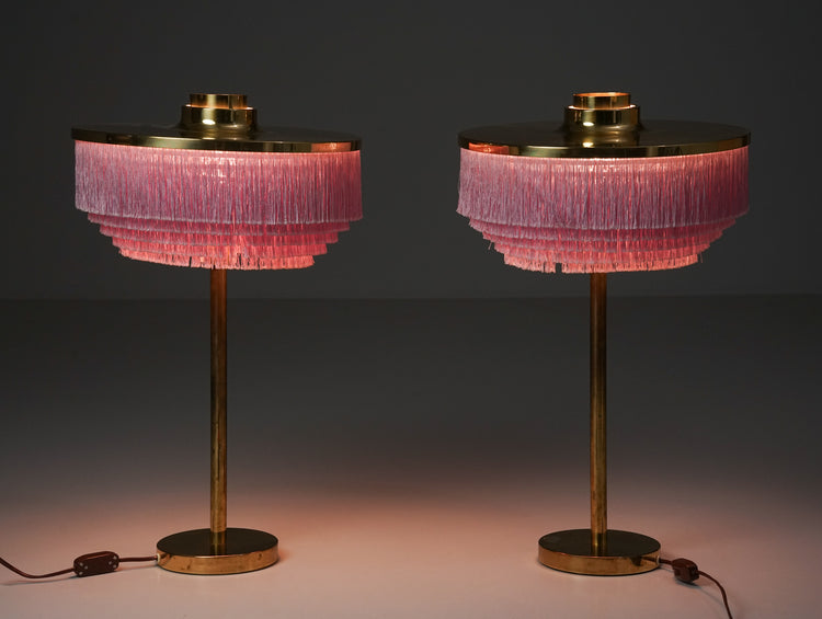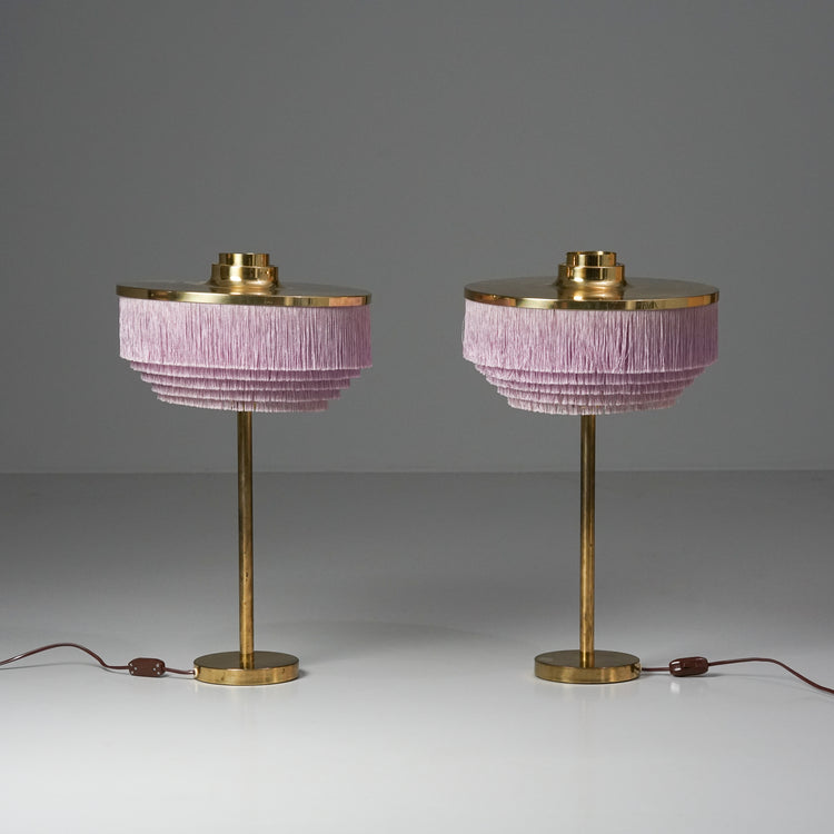 Harvinainen pöytävalaisin pari malli B-138, design Hans-Agne Jakobsson, valmistanut AB Markaryd, 60-luku. Runko messinkiä, kerrostettu hapsuvarjostin. Hyvä kunto, pientä ajan patinaa. Pöytävalaisimet myydään yhdessä. Ilmoitettu hinta on settihinta.