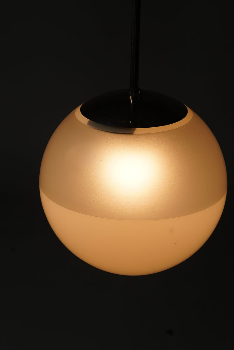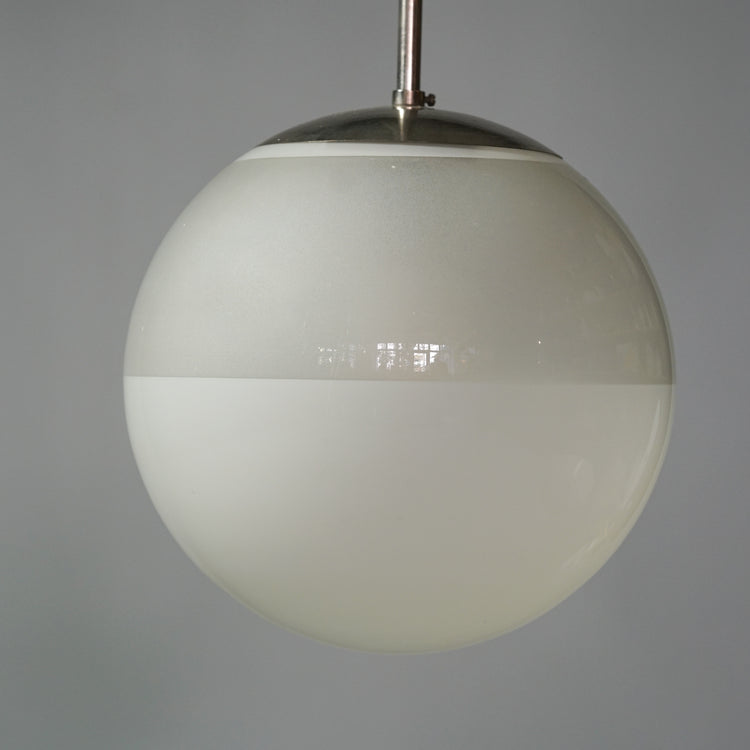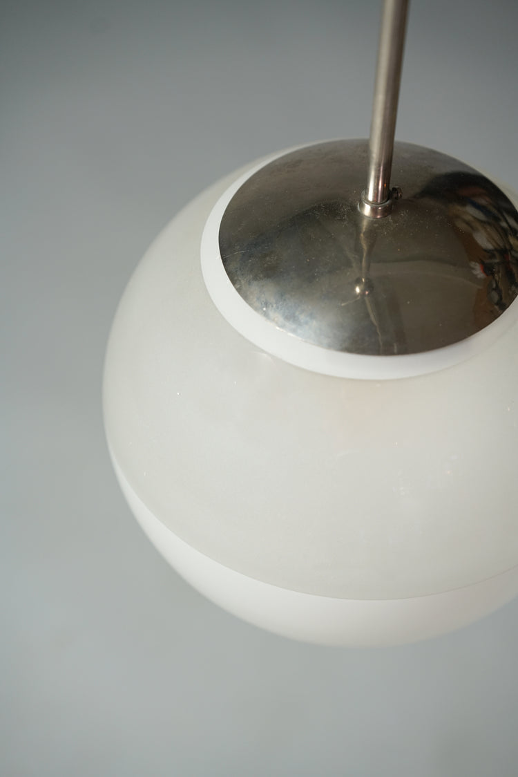 Kattovalaisin, design Paavo Tynell, 30/40-luku,valkoinen lasikupu, jonka ylempi osa huurrettu. Kromattu metallirunko. Hyvä kunto, pientä ajan patinaa.