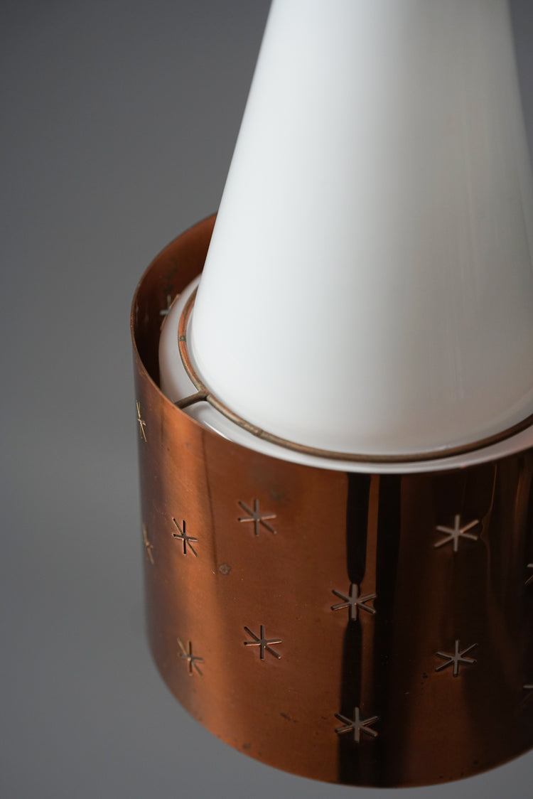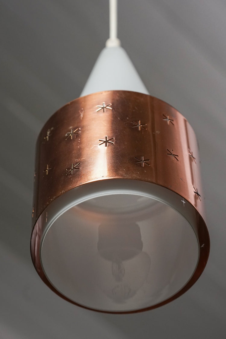 Valmistaja Idman, 1950-luku. Kuparia ja opaalilasia, hyvä kunto, pientä ajan patinaa.