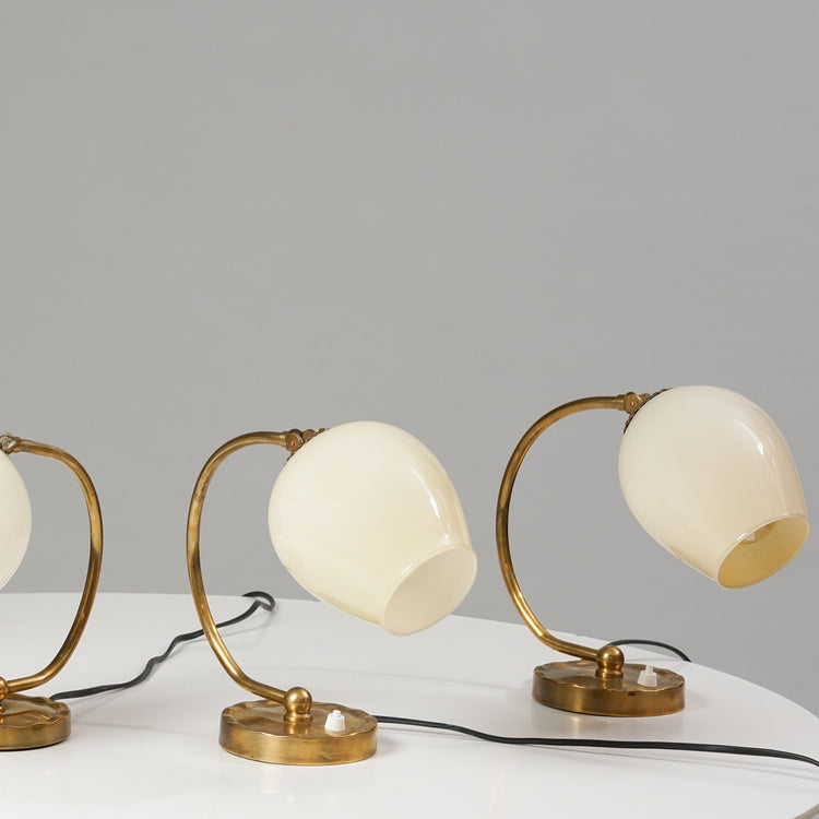 Pöytä-/seinävalaisin setti (4kpl myydään yhdessä), design Paavo Tynell, valmistanut Idman, 50-luku, messinkiä, opaali lasikupu, leimattu, hyvä kunto, pientä ajan patinaa. Valaisimet myydään yhdessä. Ilmoitettu hinta on setin hinta.