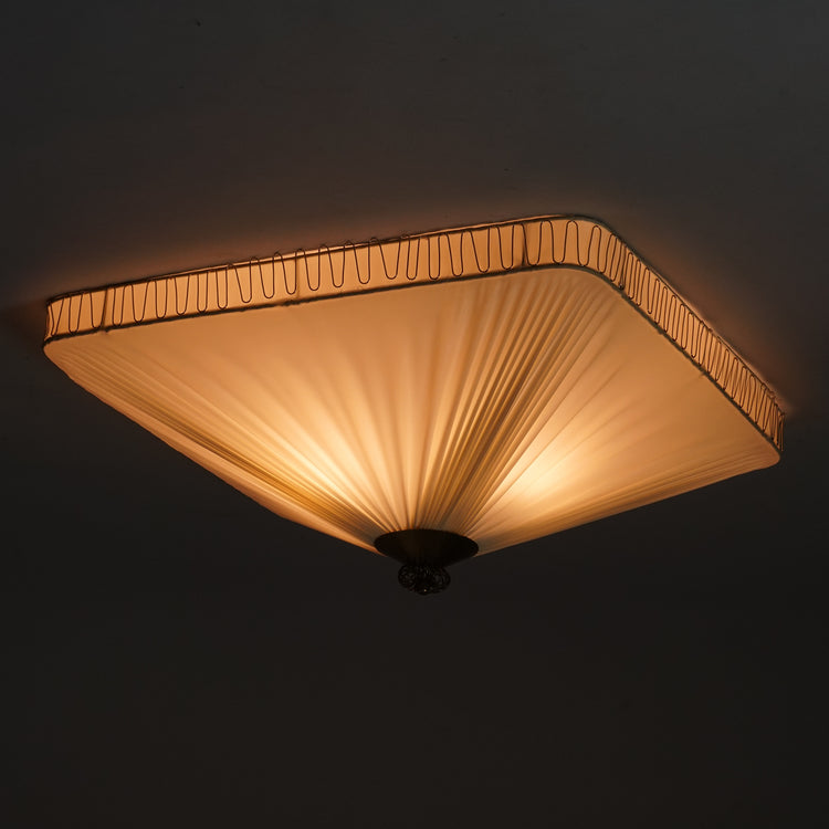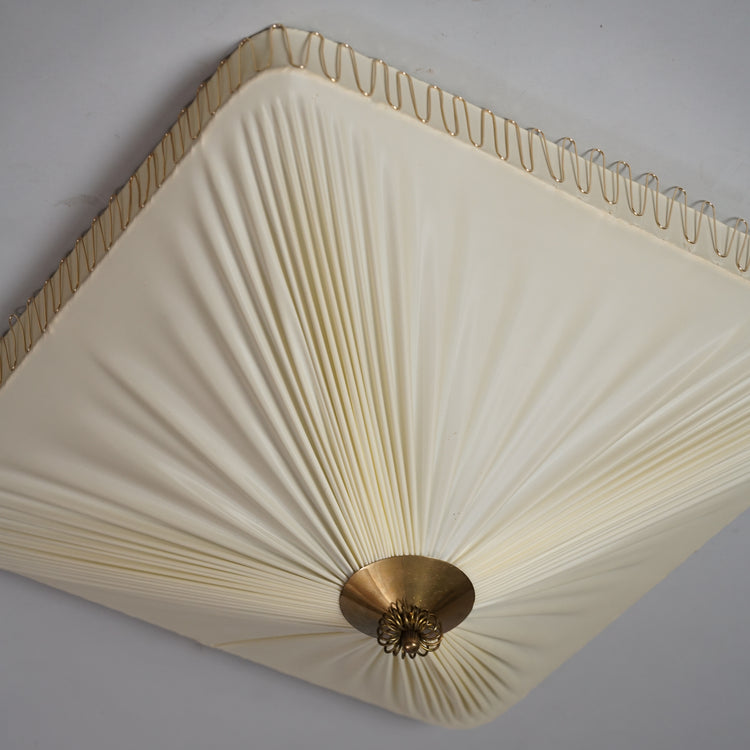 Plafondi, valmistettu Suomessa, 50-luku, messinki yksityiskohdat, varjostin muovia, hyvä kunto, pientä ajan patinaa ja jälkeä.