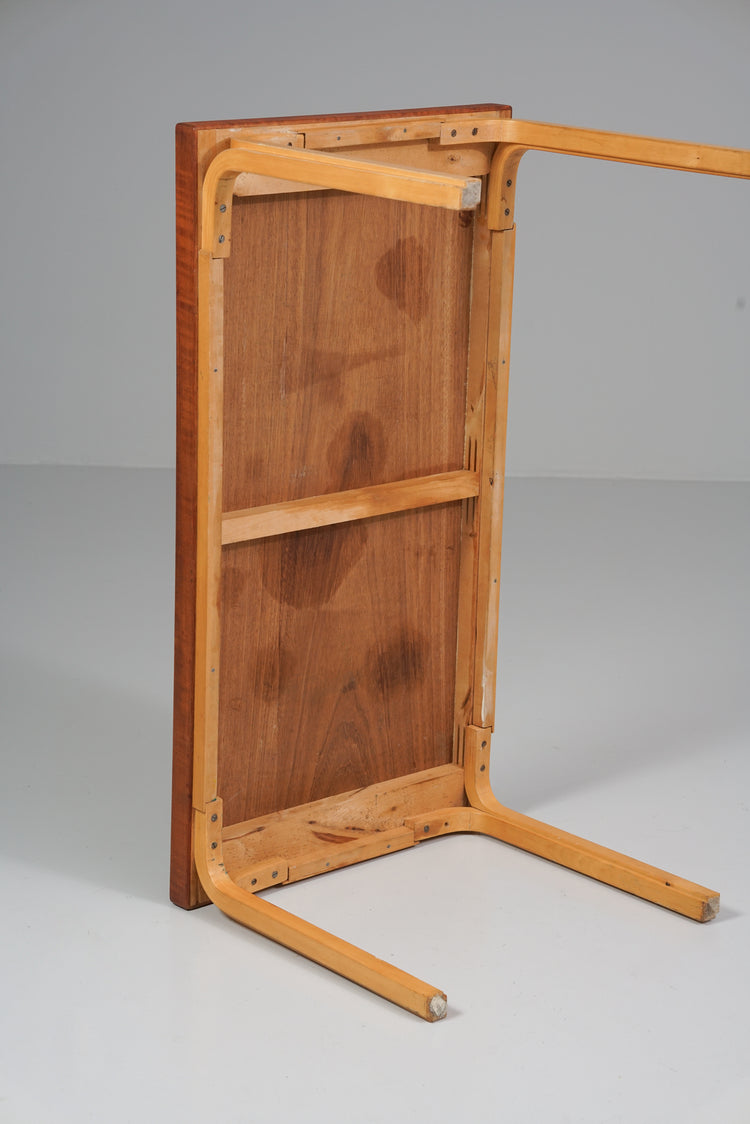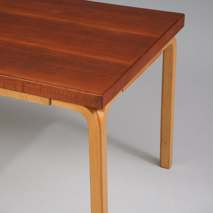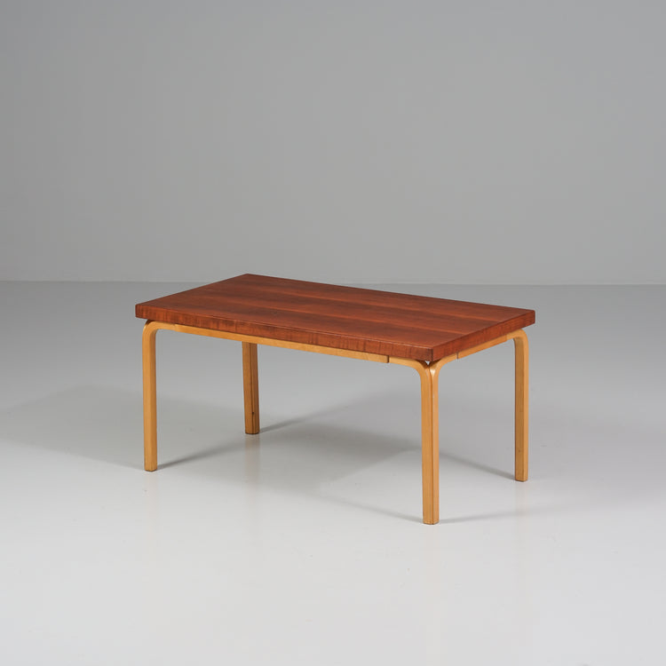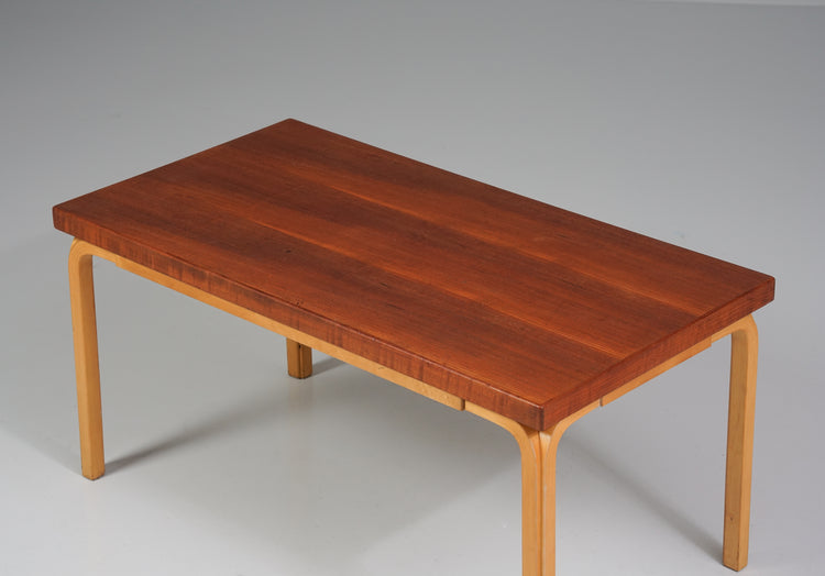 Sohvapöytä, design Alvar Aalto, valmistanut Oy Huonekalu- ja Rakennustyötehdas Ab, 50-luku. Runko koivua, kansi tiikkiä. Hyvä kunto, ajan patinaa.