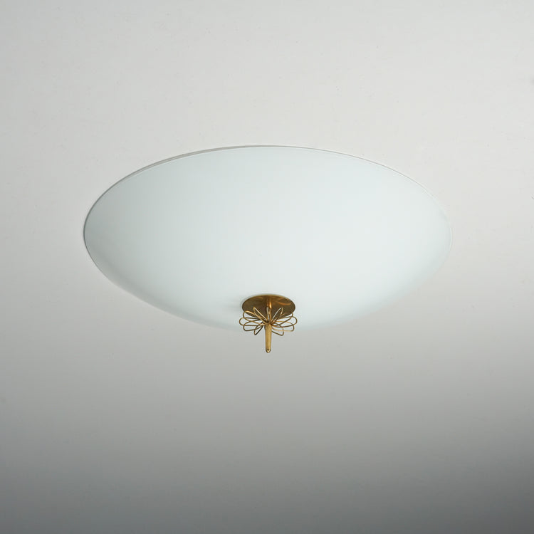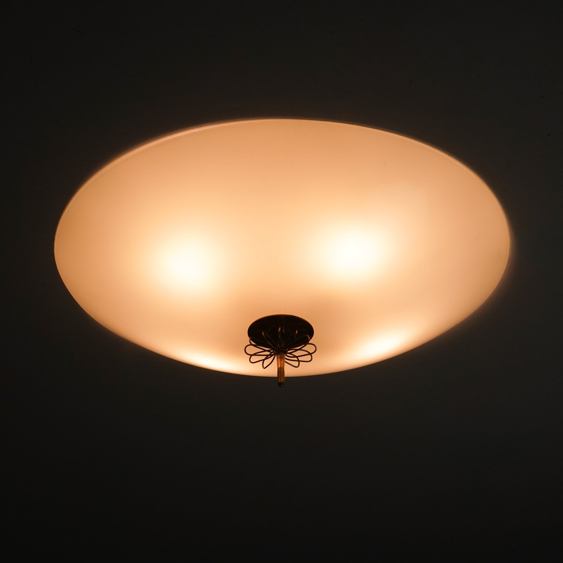 Plafondi, design Paavo Tynell, valmistanut Taito Oy, 40-luku. Lasikupu, messinki yksityiskohdat. Leimattu. Hyvä kunto, pientä ajan patinaa.