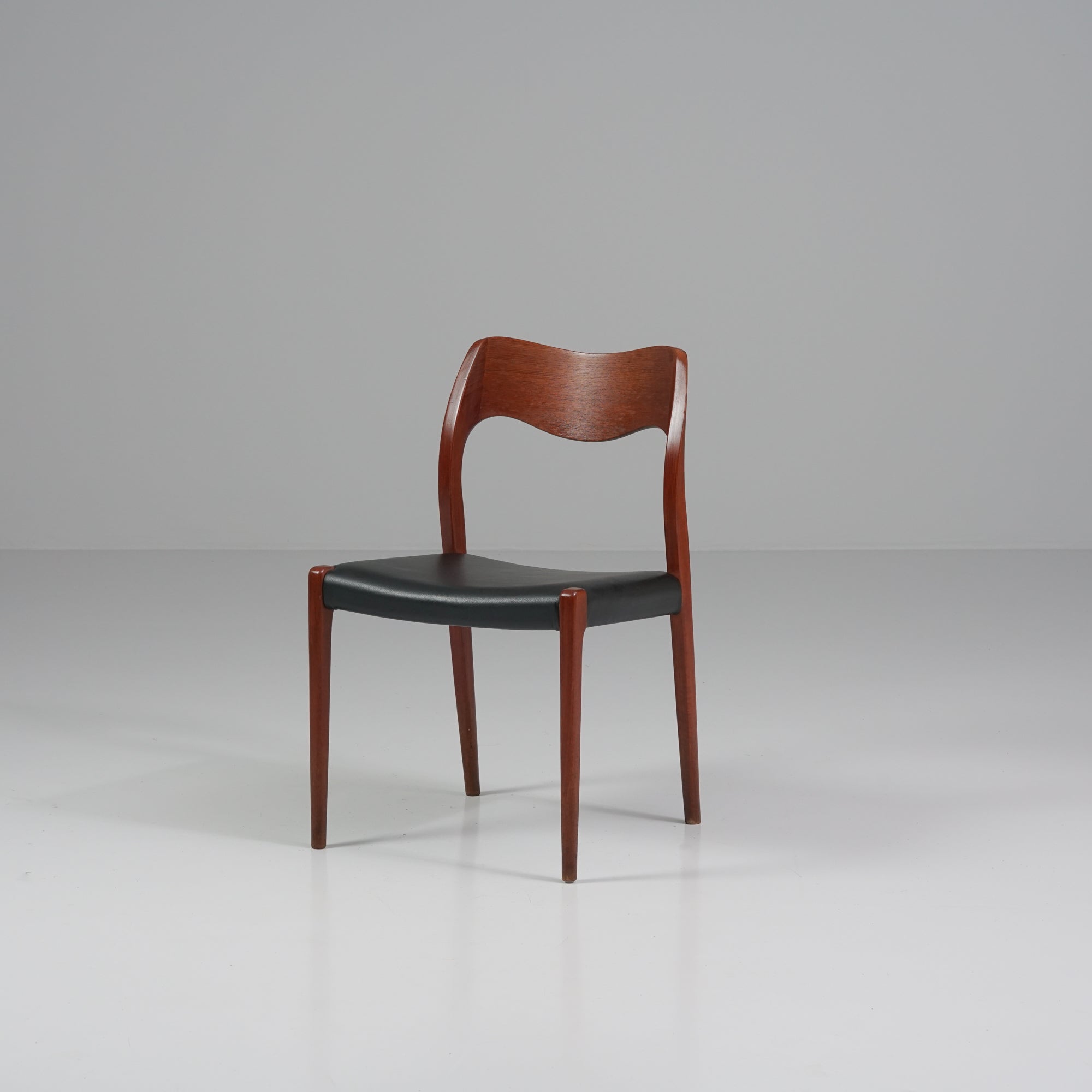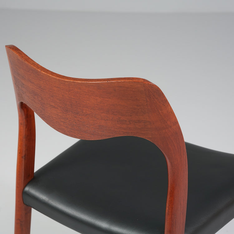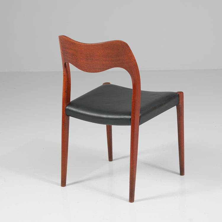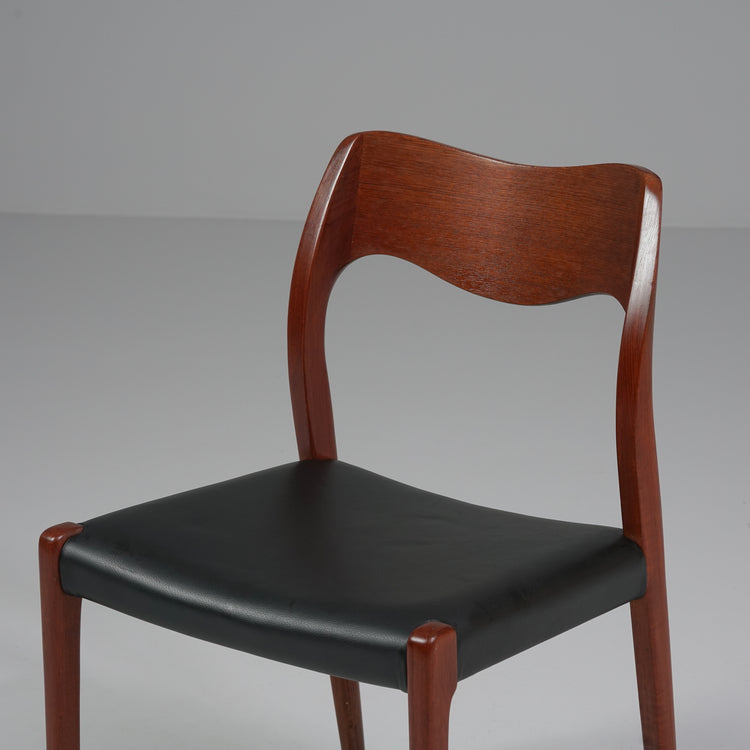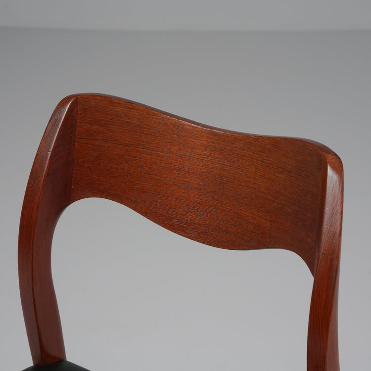 Malli 71 tuoli, design Niels Otto Møller, valmistanut J.L Møllers Møbelfabrik, 60-luku. Runko tiikkiä, laadukas nahkaverhoilu. Hyvä kunto, pientä ajan patinaa.