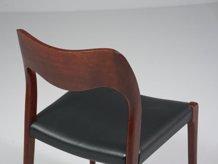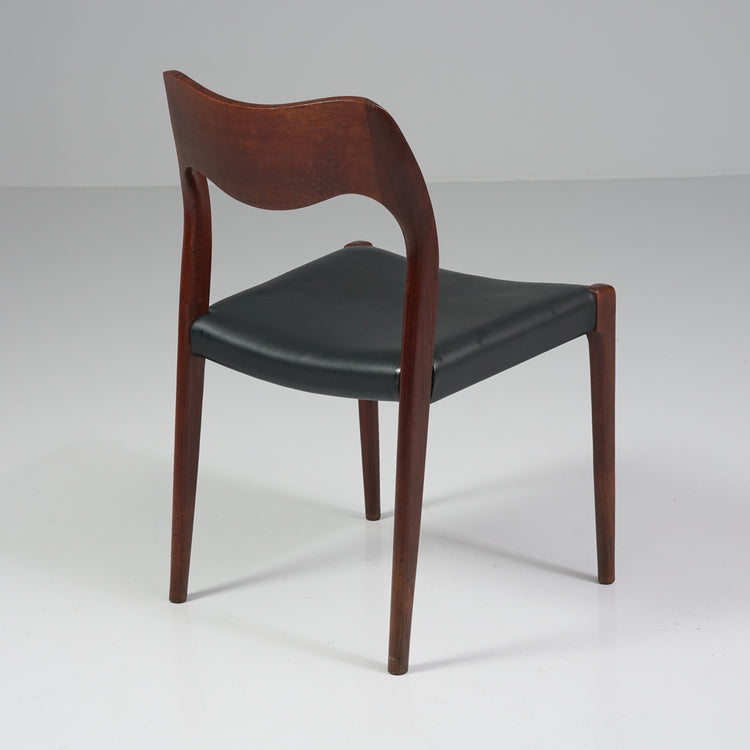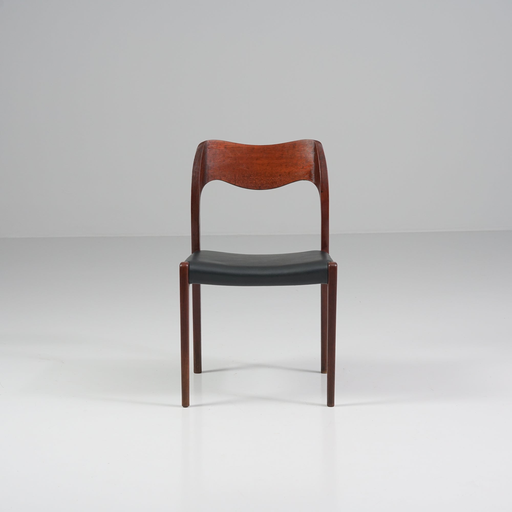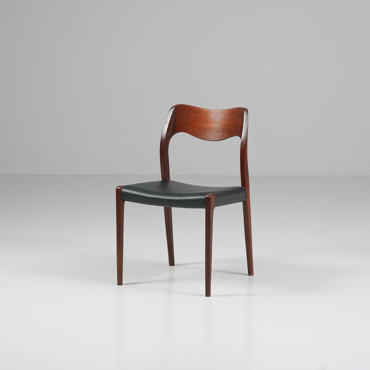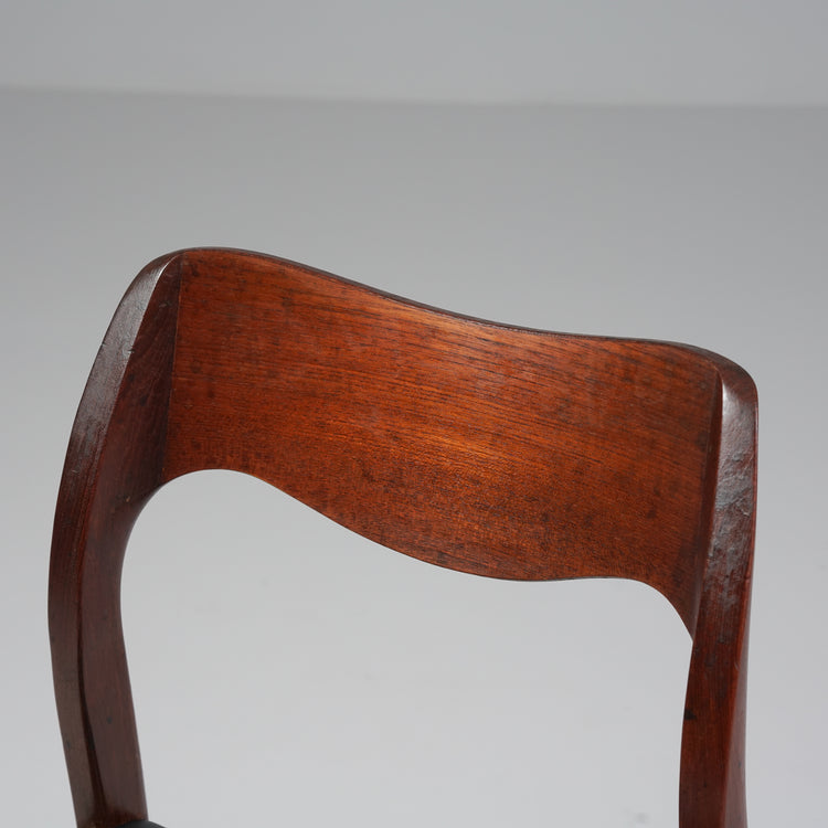 Malli 71 tuoli, design Niels Otto Møller, valmistanut J.L Møllers Møbelfabrik, 60-luku. Runko tiikkiä, laadukas nahkaverhoilu. Hyvä kunto, ajan patinaa ja jälkeä.