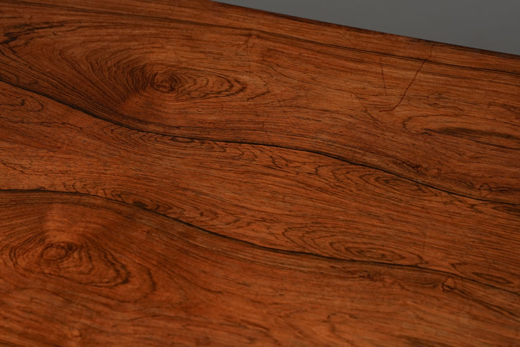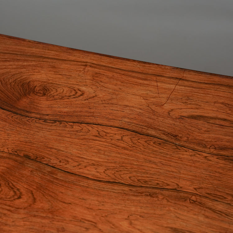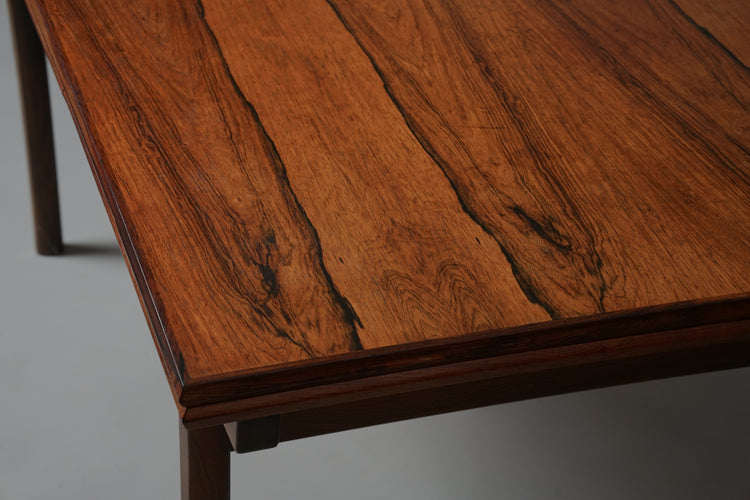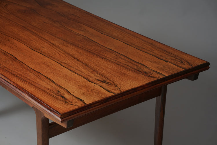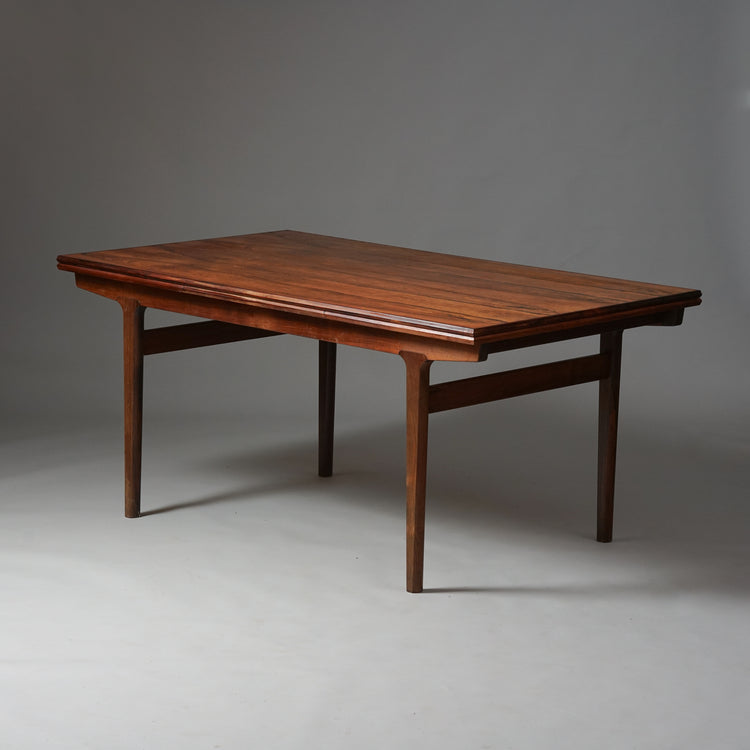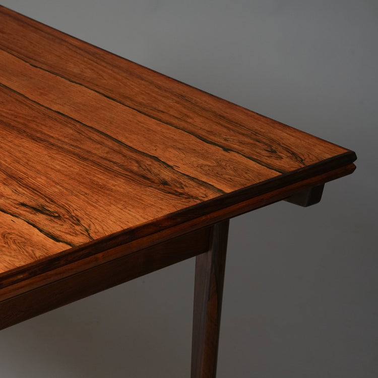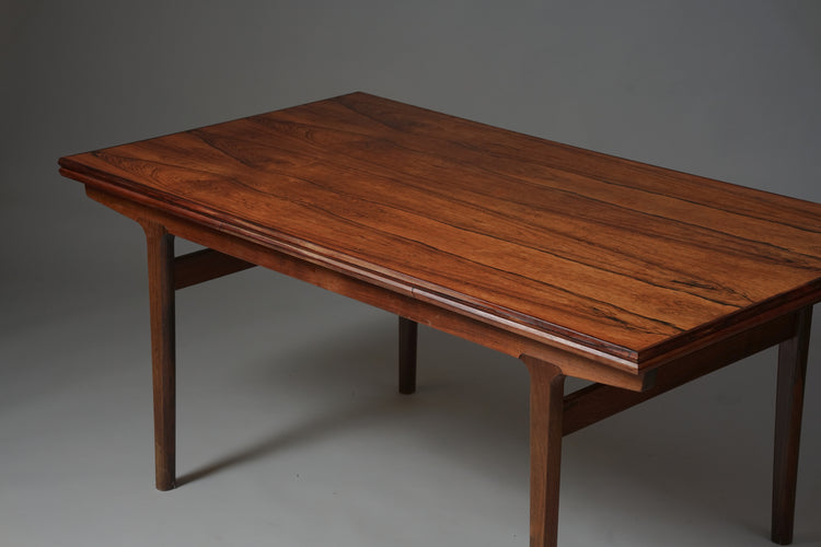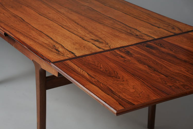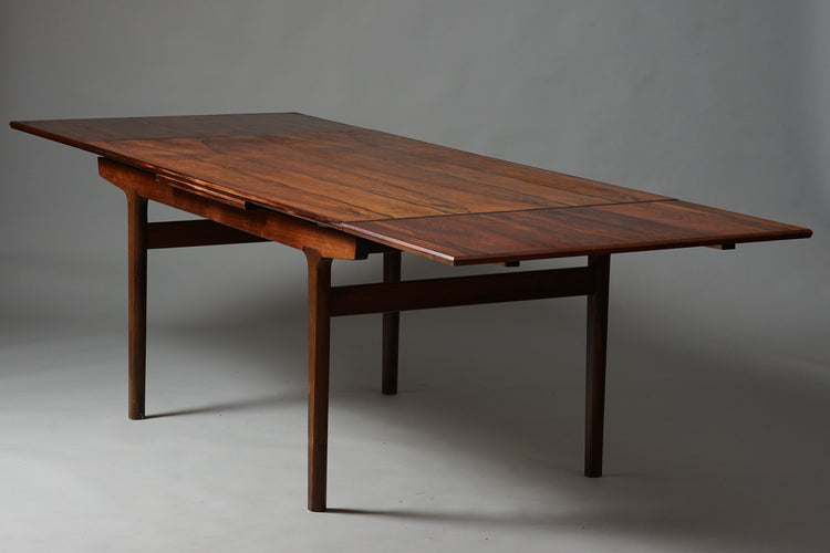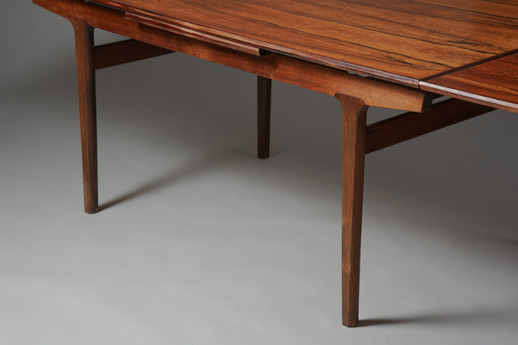 Extendable dining table, designed by Henning Kjærnulf, 1960s, Denmark. Palisander, the extension pieces at both ends. Quality table, great condition, patina and wear consistent with age and use.